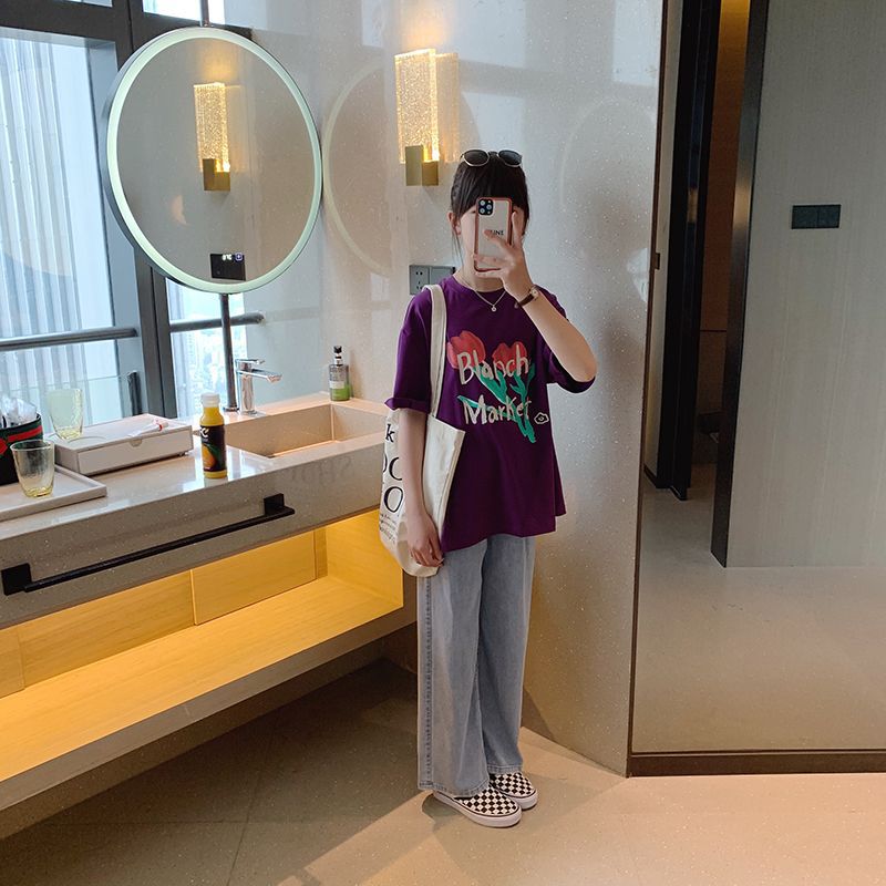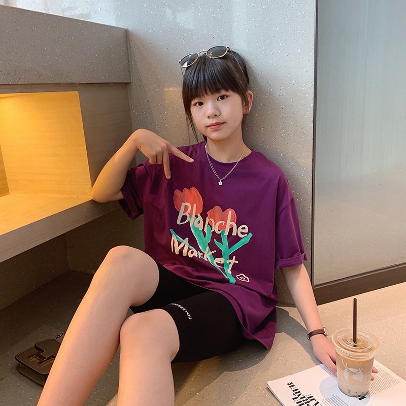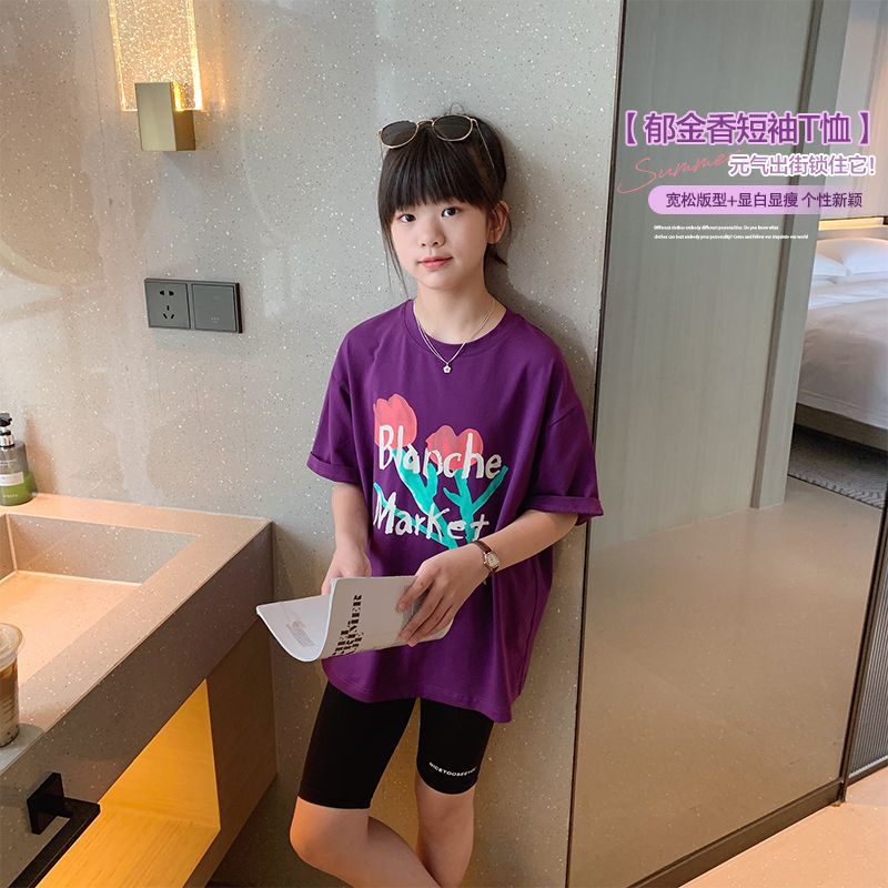 女童短袖棉质t恤宽松透气吸汗新款儿童洋气女孩半袖上衣夏季童装