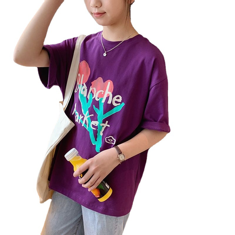 纯棉美式复古短袖t恤女春夏新款国潮设计感炸街宽松大码上衣