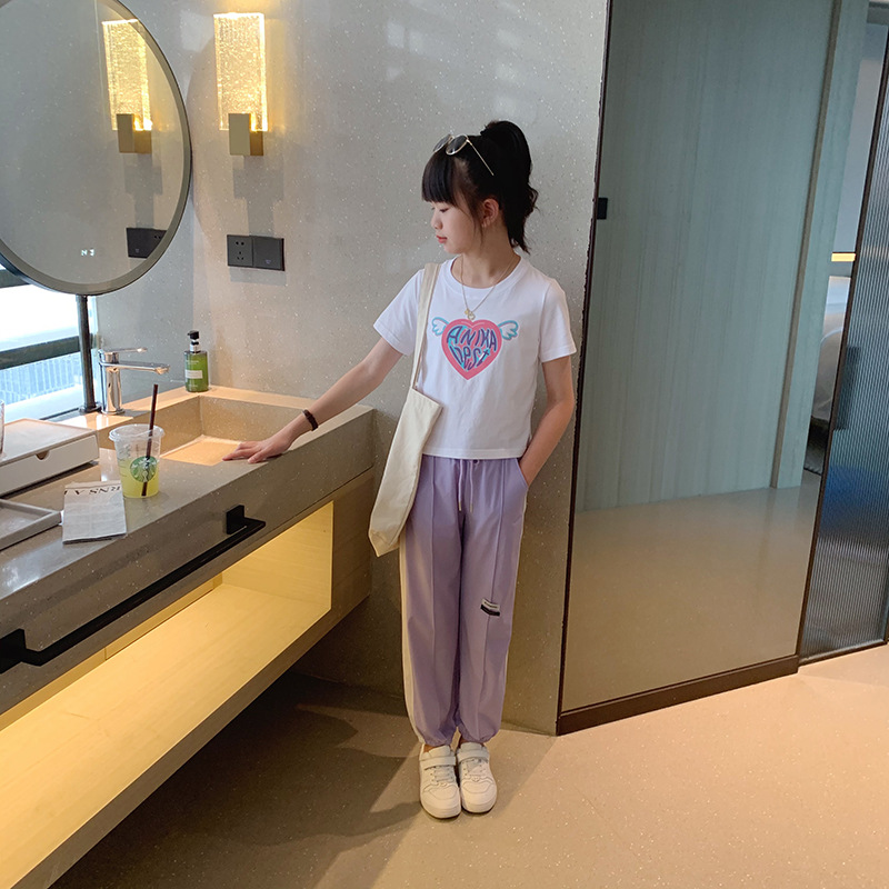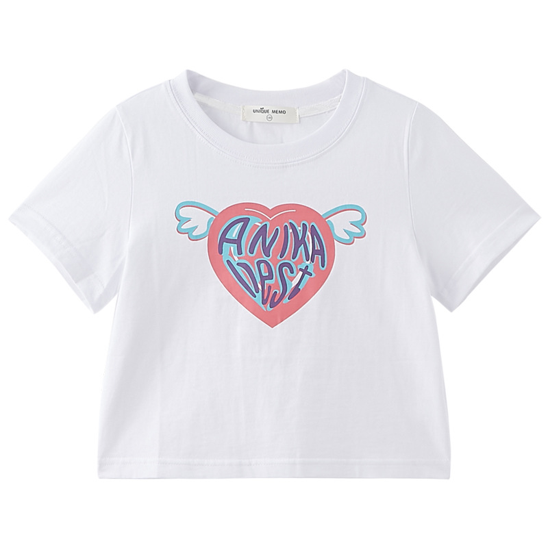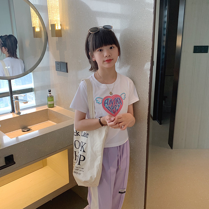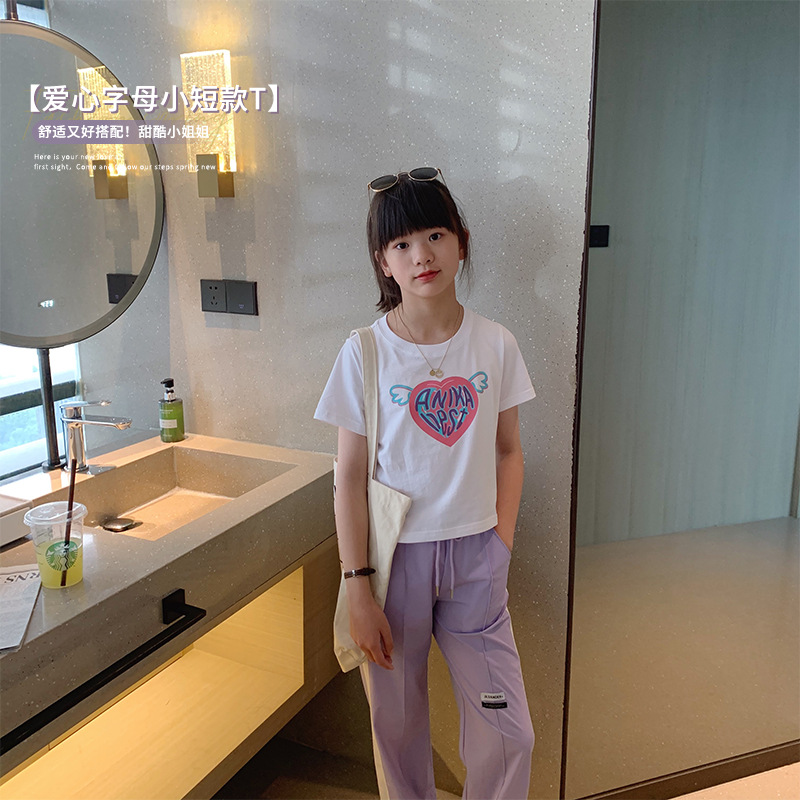 女童短袖纯棉t恤爱心印花可爱中大童夏季半袖t洋气上衣韩系童装