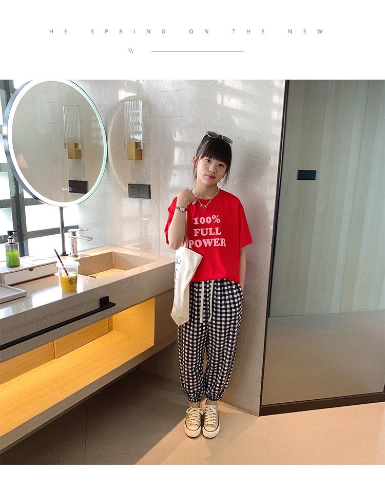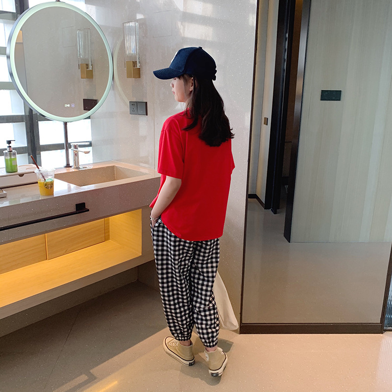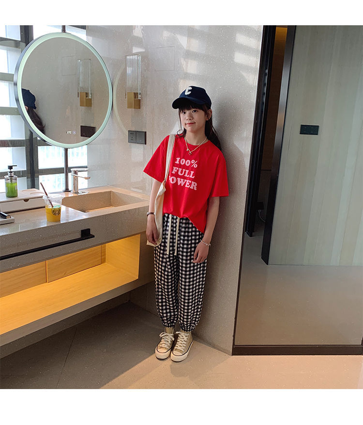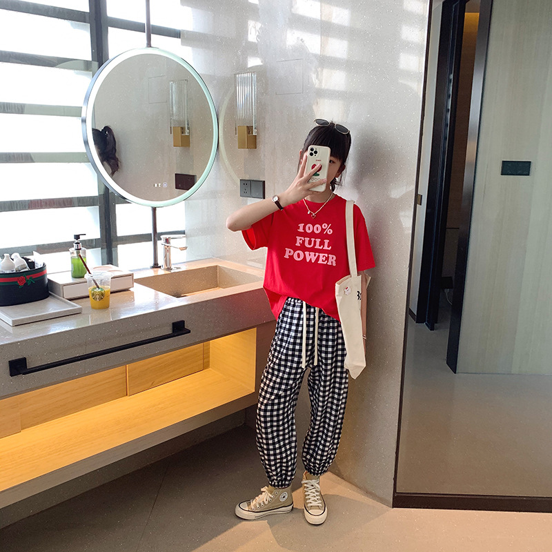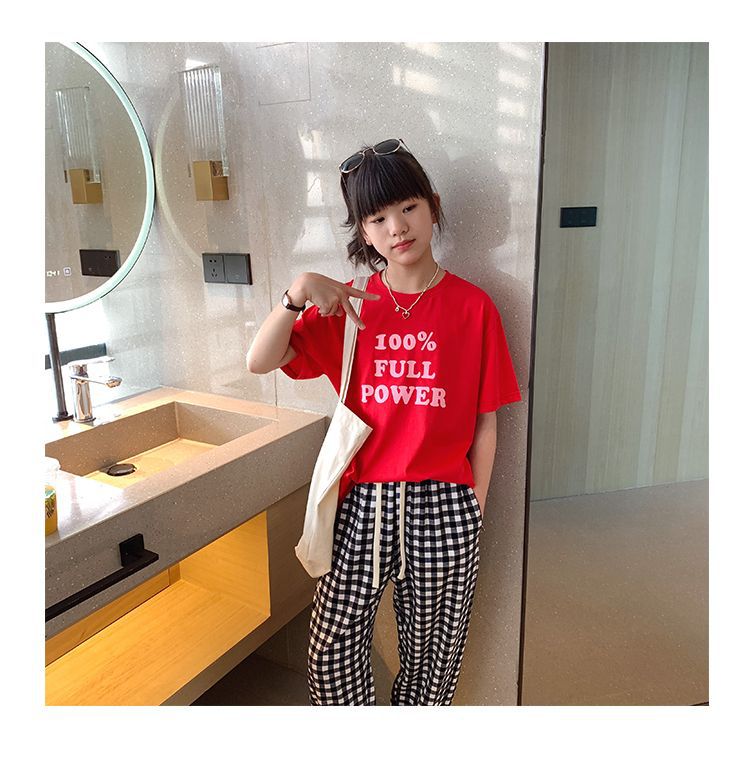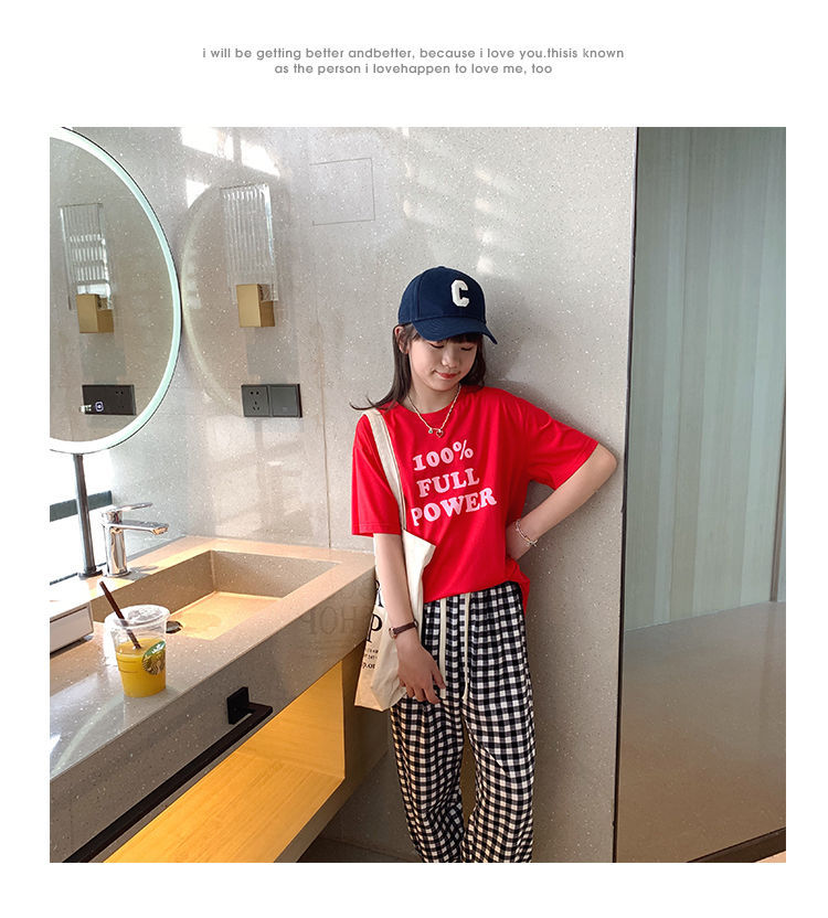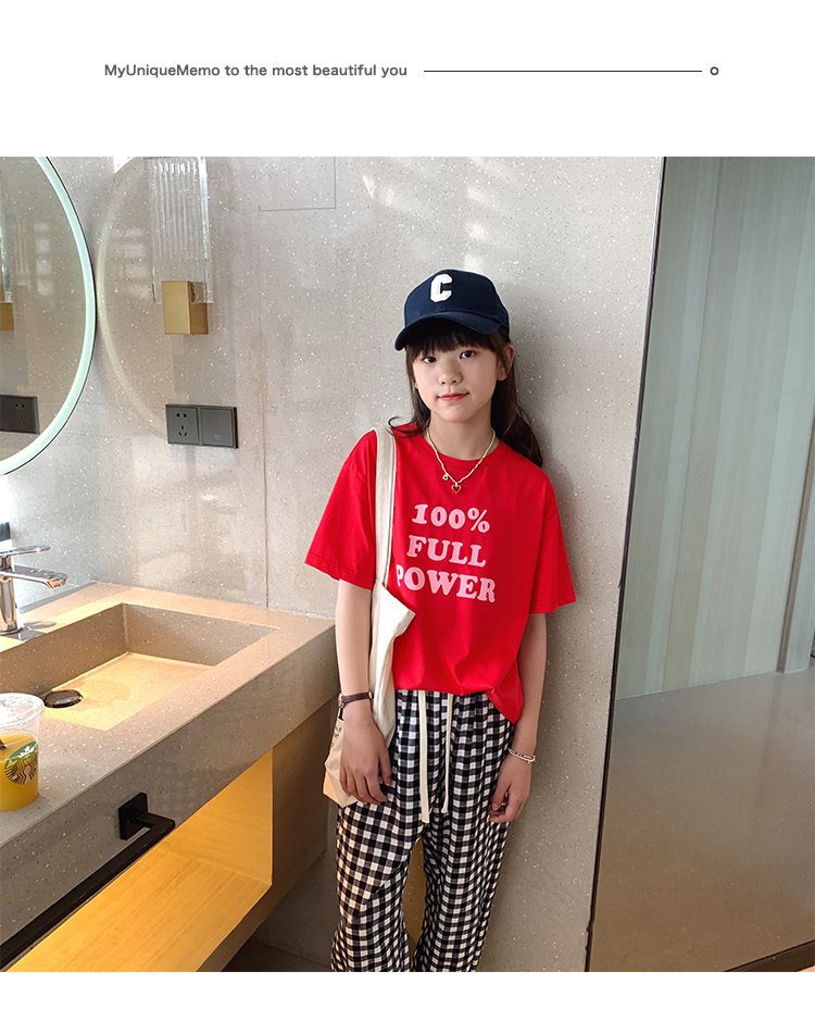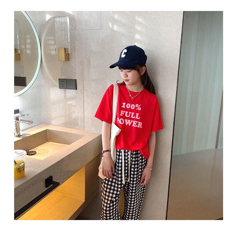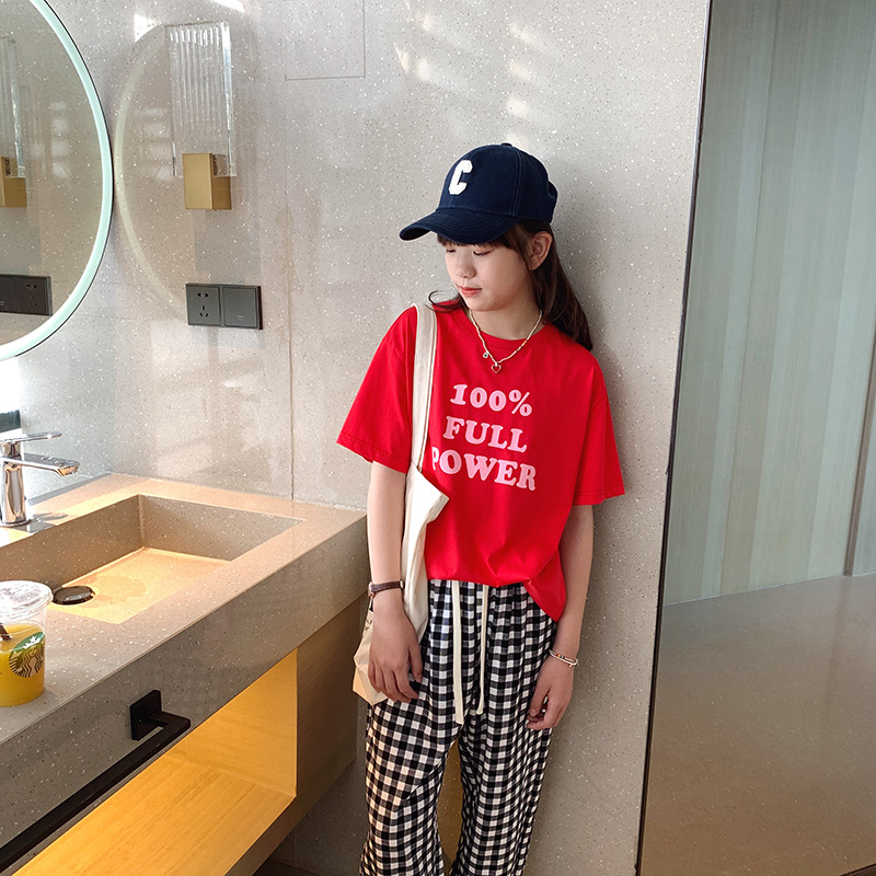 女童短袖棉质t恤中大童韩版字母休闲半袖t潮流时尚宽松上衣童装