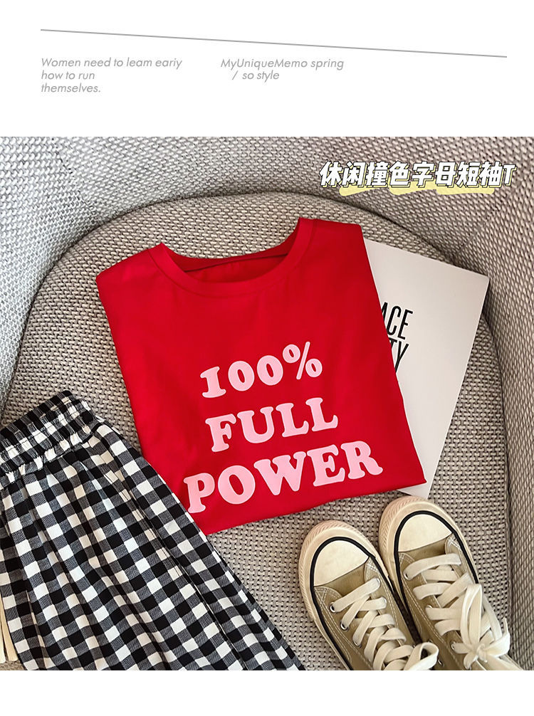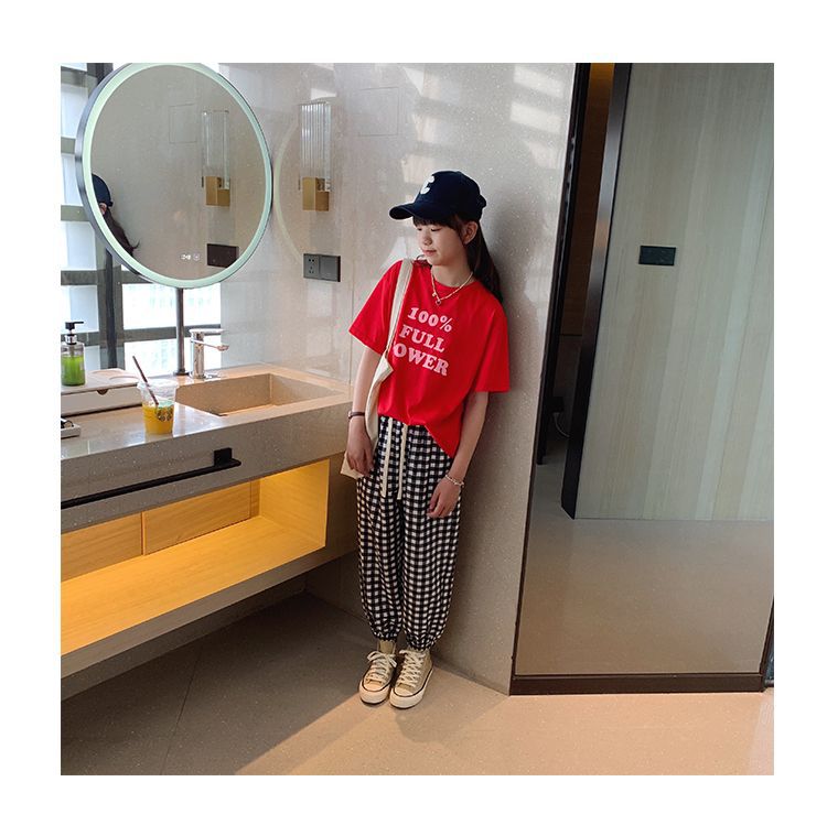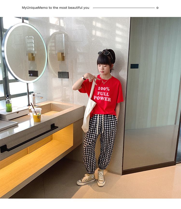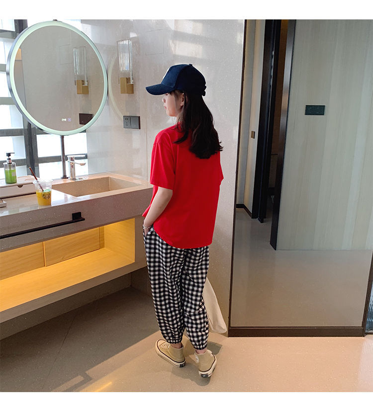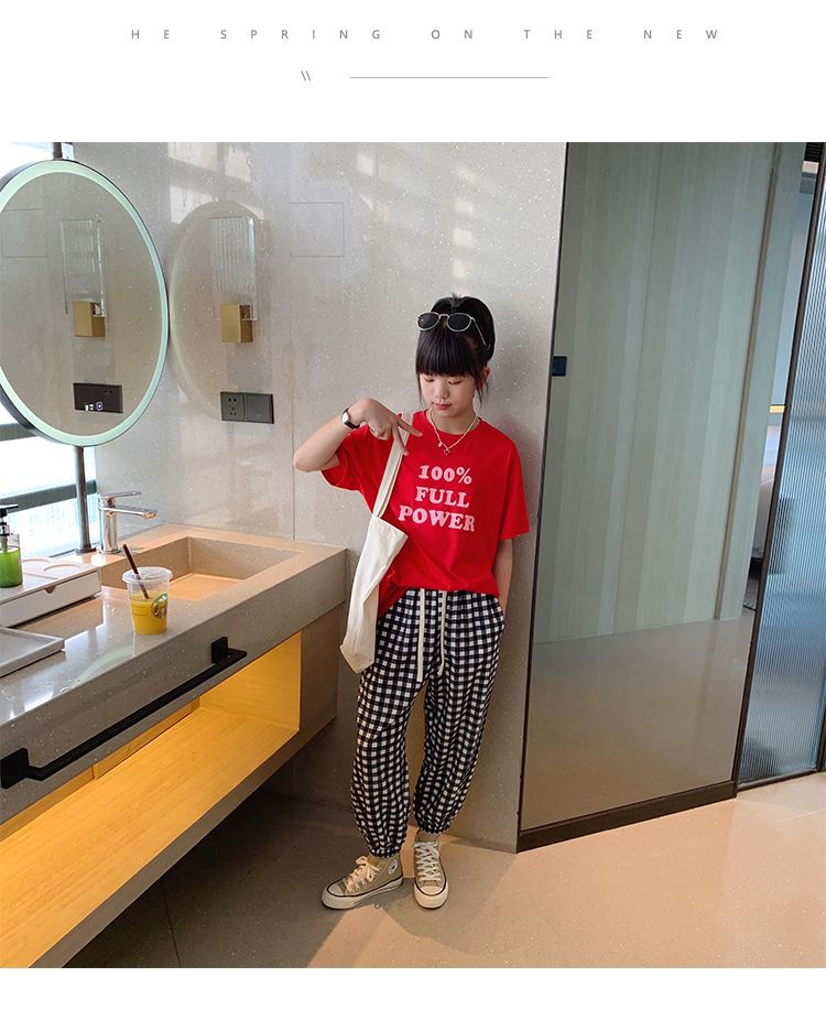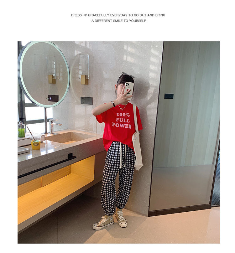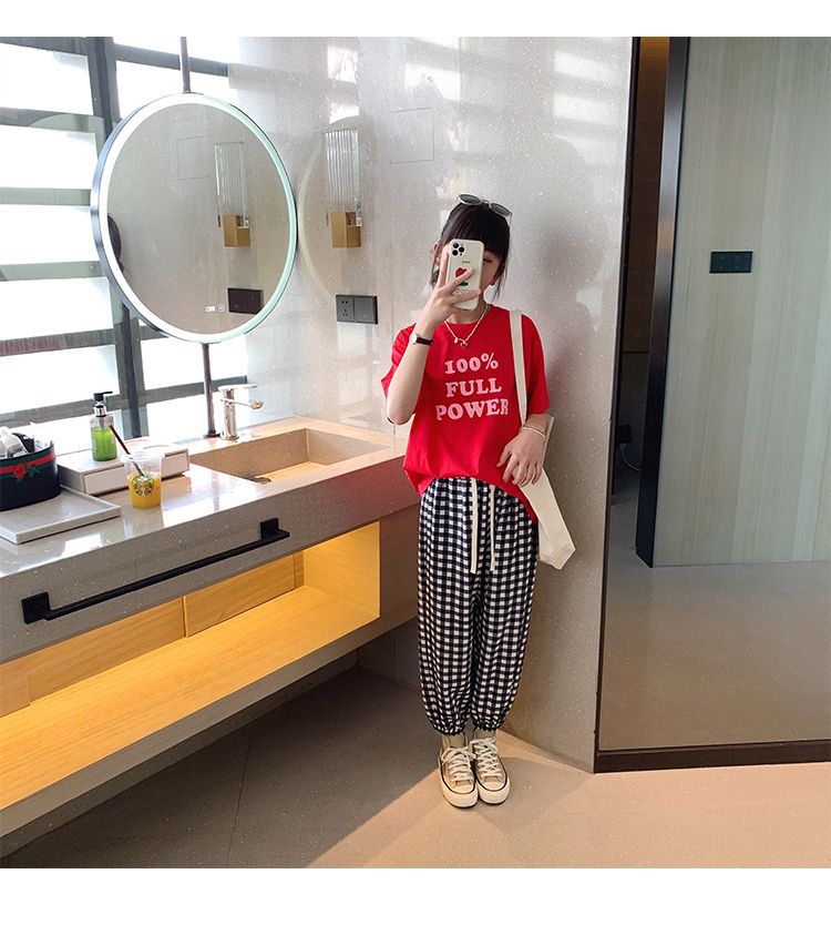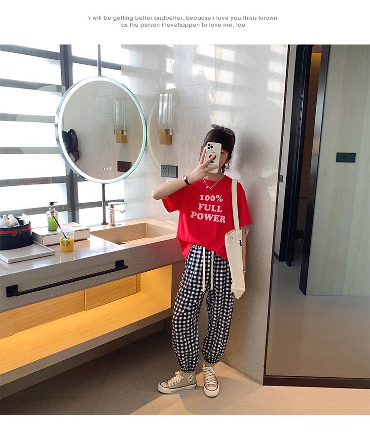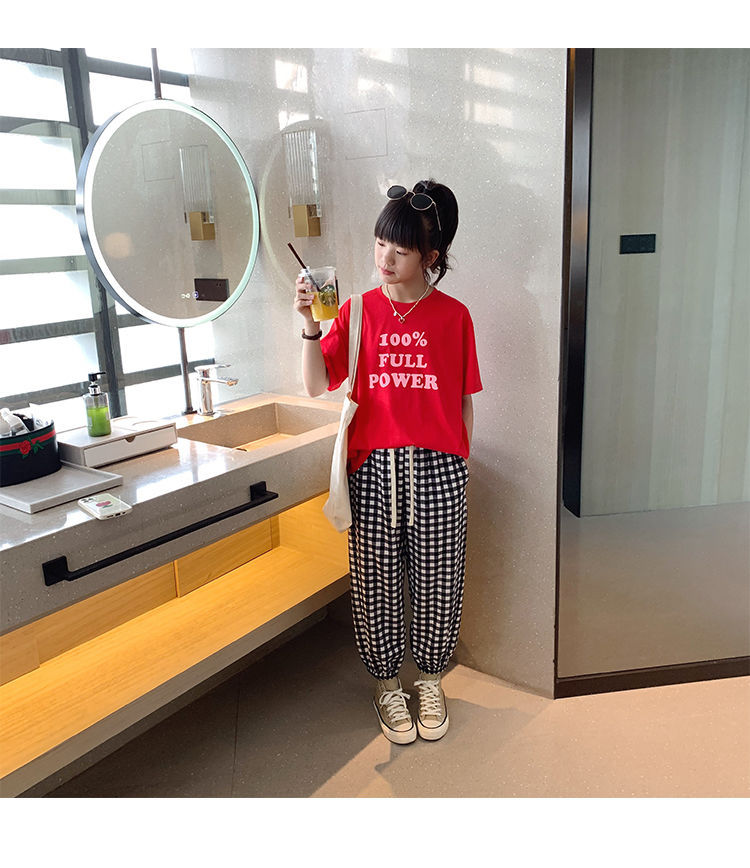 女童短袖棉质t恤中大童韩版字母休闲半袖t潮流时尚宽松上衣童装