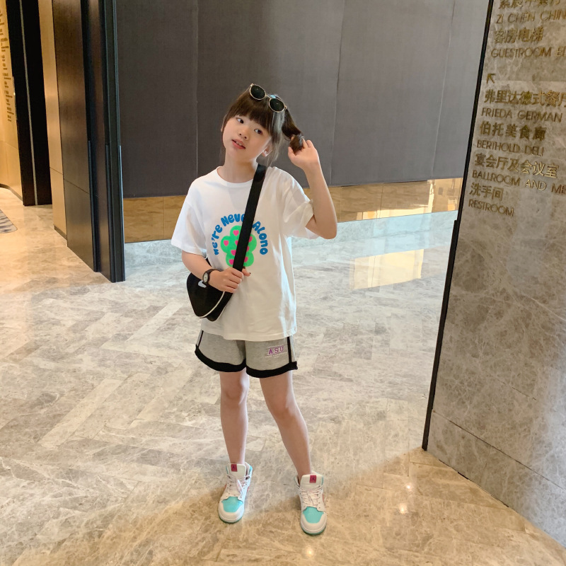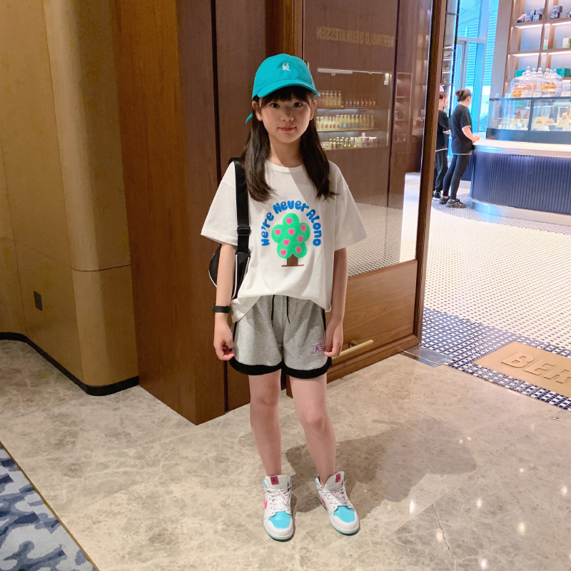 女童短袖纯棉t恤中大童夏季洋气宽松上衣休闲韩系半袖t童装潮