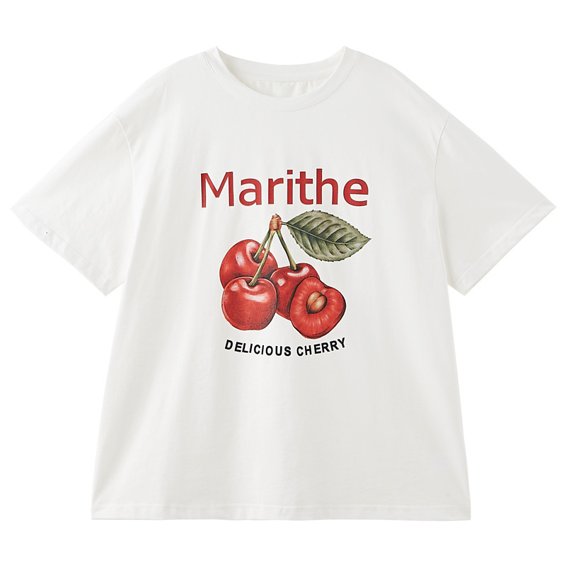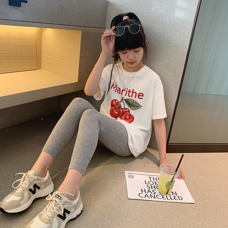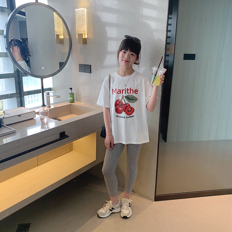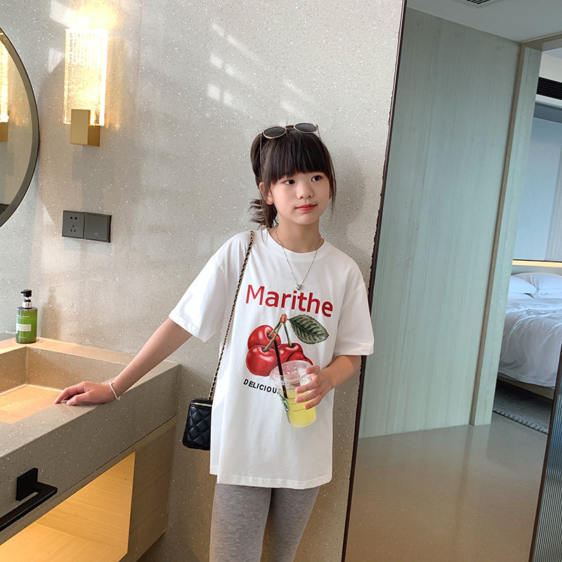 女童短袖纯棉t恤樱桃印花可爱中大童夏季洋气童装半袖t宽松上衣