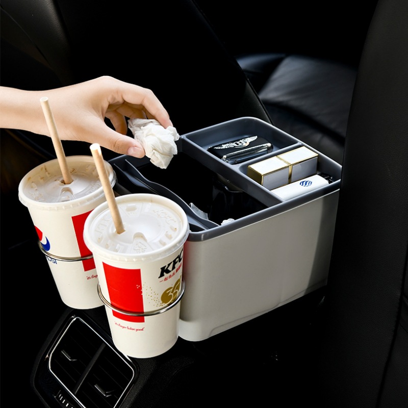 车载纸巾盒垃圾桶二合一扶手箱绑带式多功能饮料杂物车用收纳盒