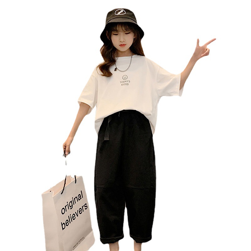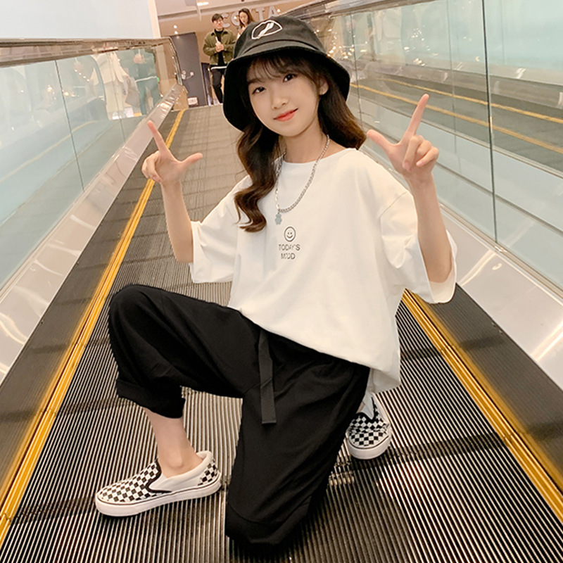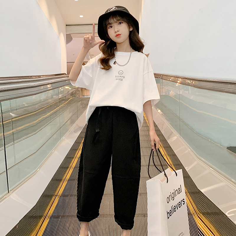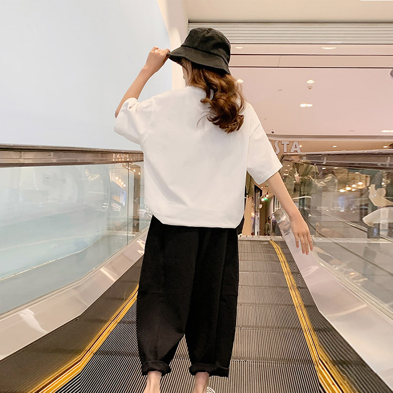 夏装女童纯棉t恤短袖字母印花洋气半袖t上衣粉可爱小女孩儿童装
