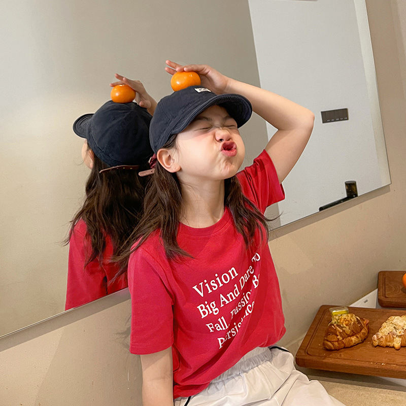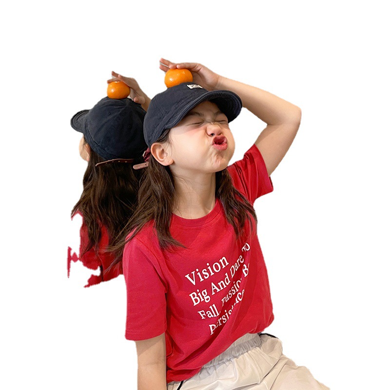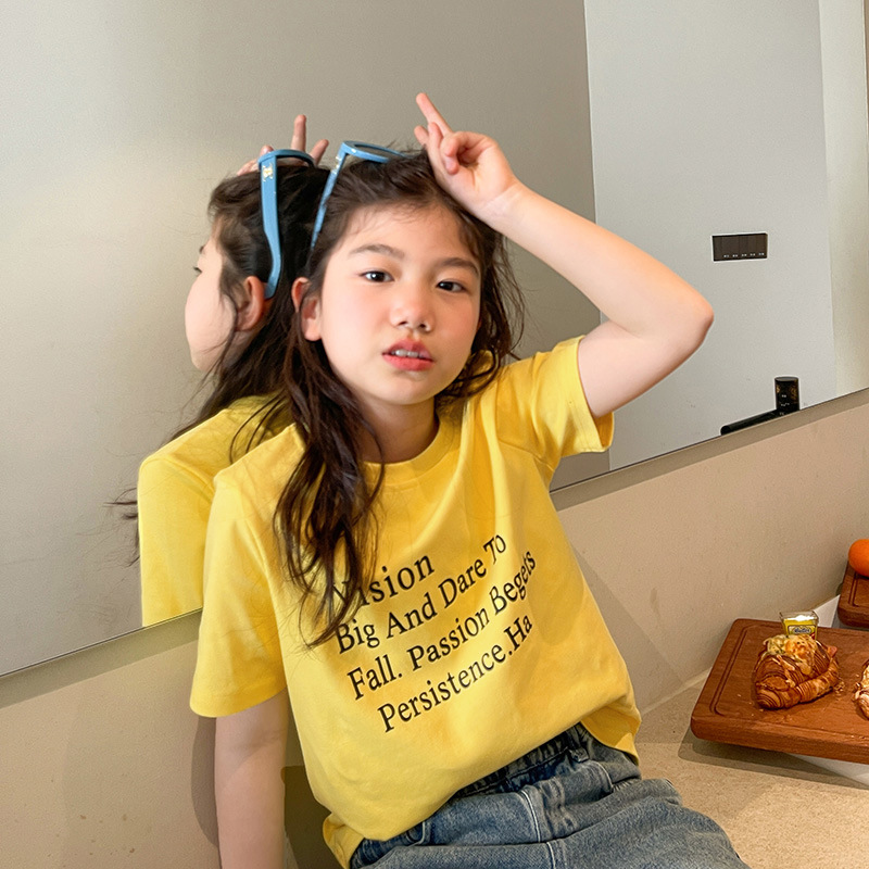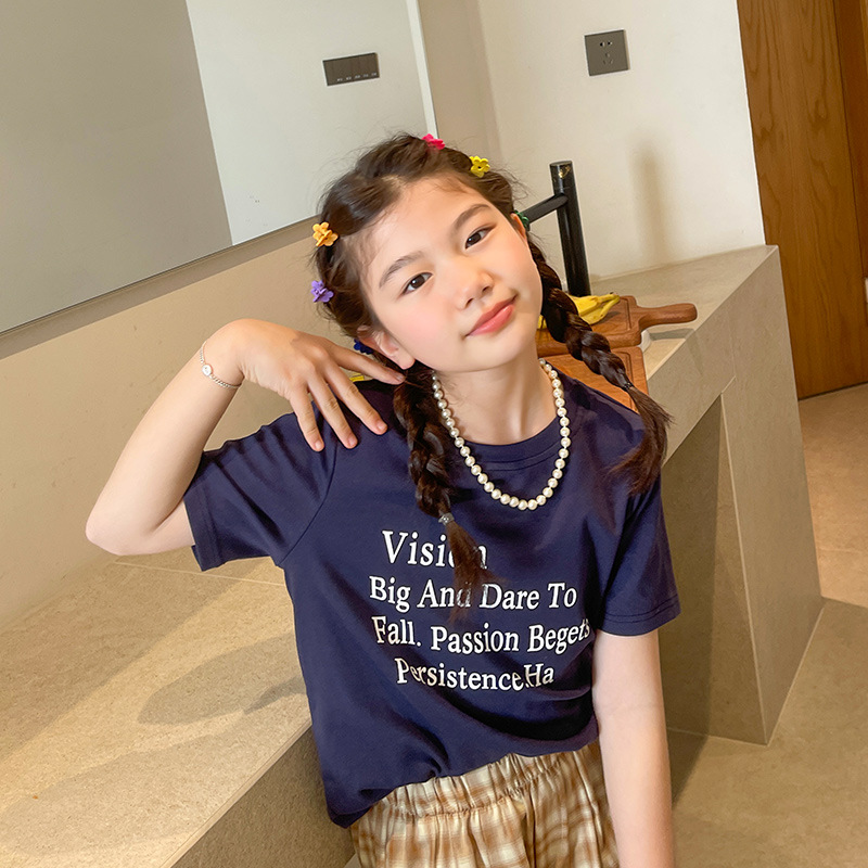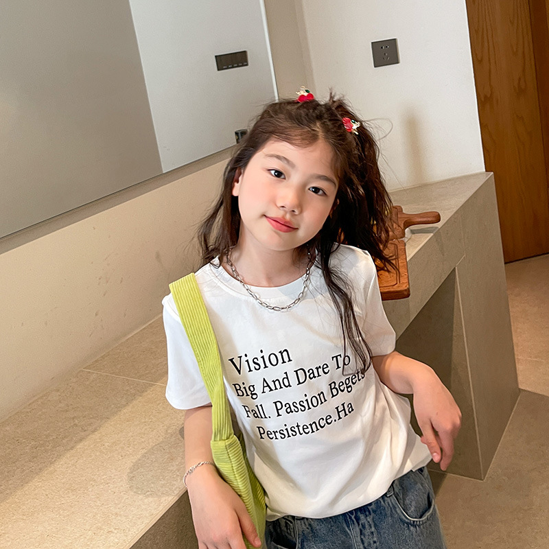女童短袖纯棉洋气儿童t恤女童夏季宽松前后印花半袖上衣童装潮