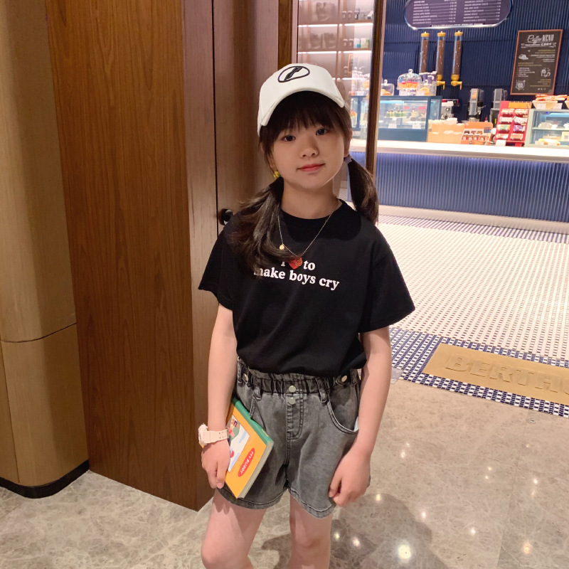 女童短袖棉质透气t恤新款夏季时尚半袖t洋气宽松上衣日系童装潮
