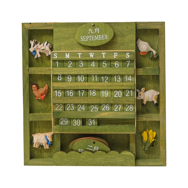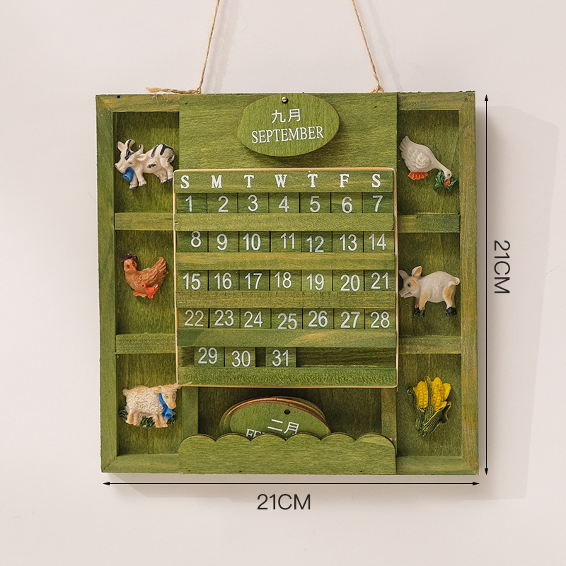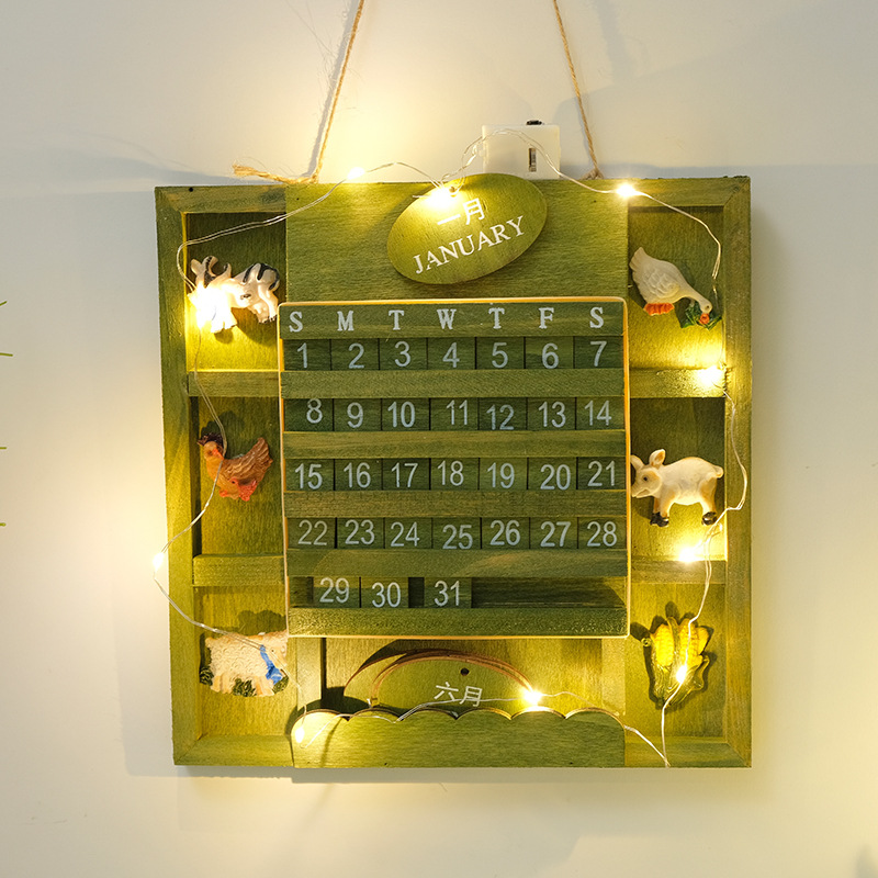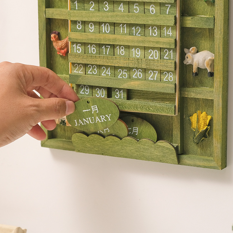 创意木制挂墙日历复古万年历家居墙面客厅日期摆设挂历装饰品道具