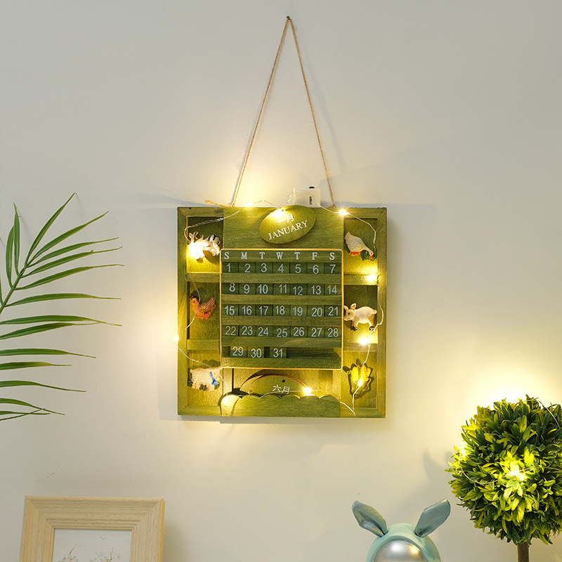 绿色挂墙小日历 含麻绳+1米灯