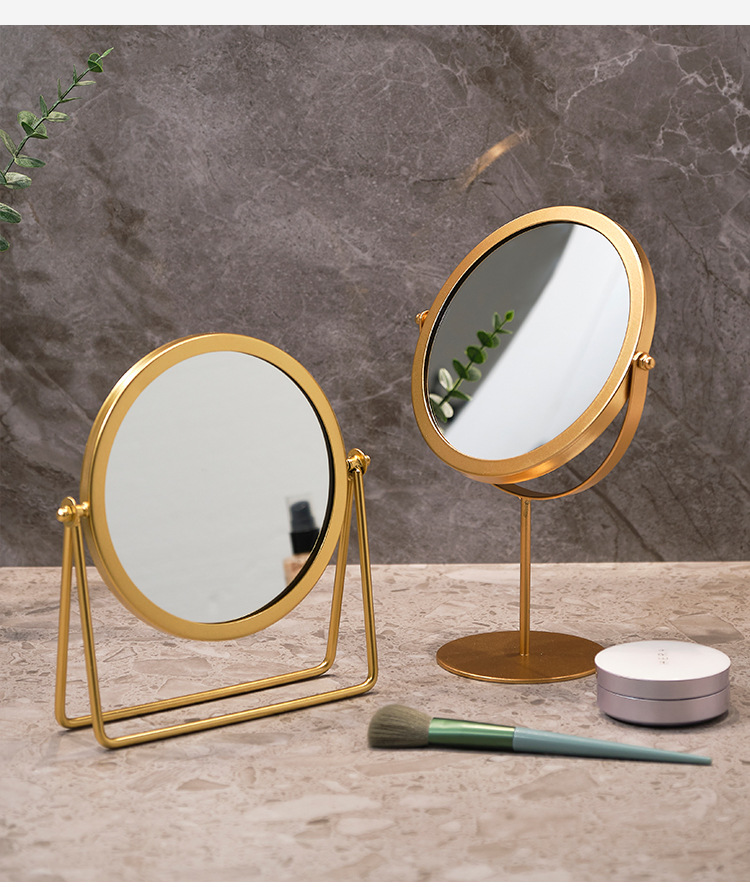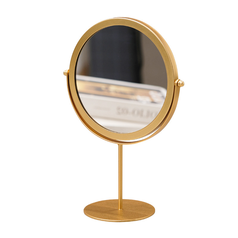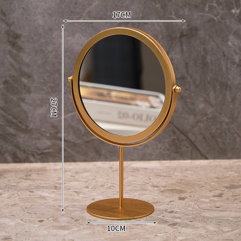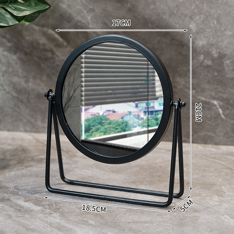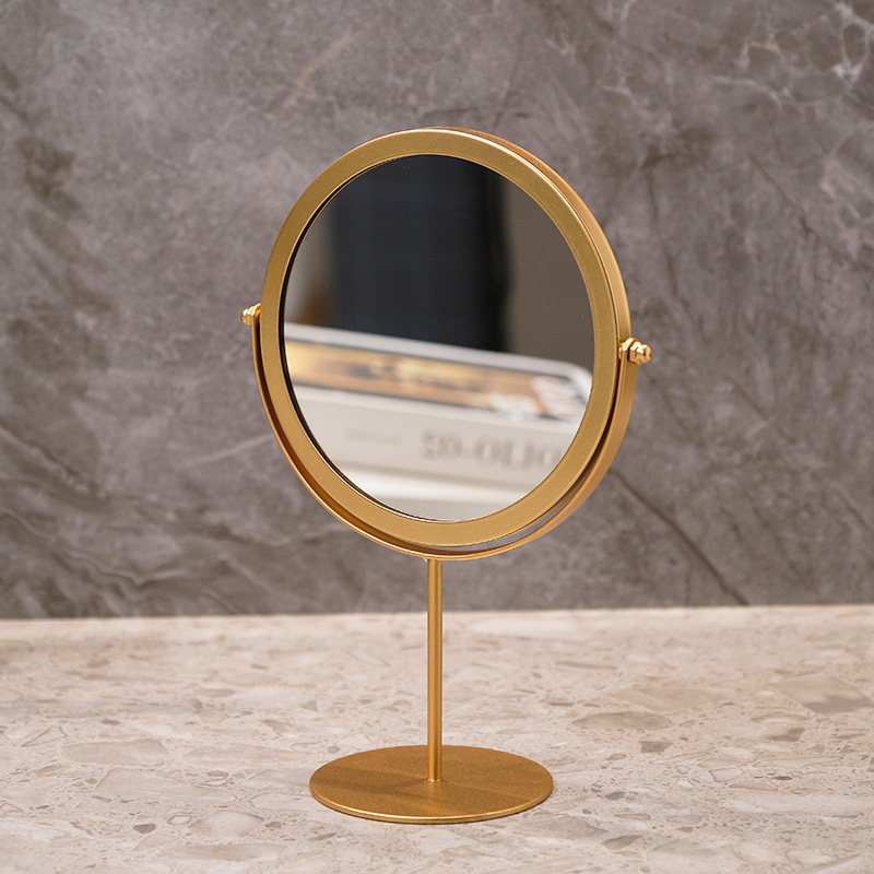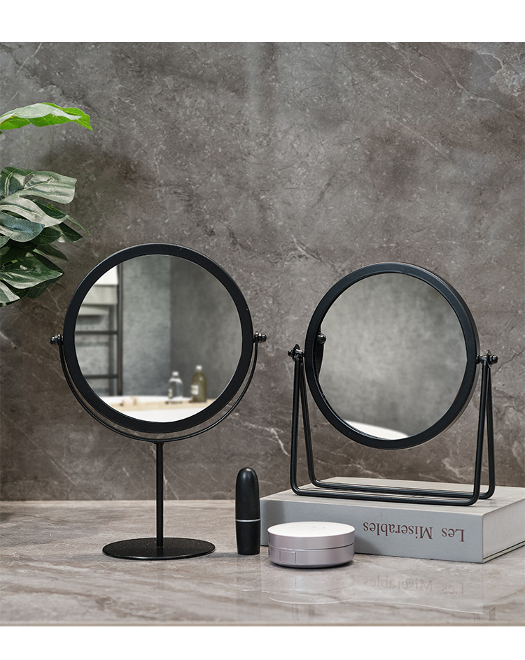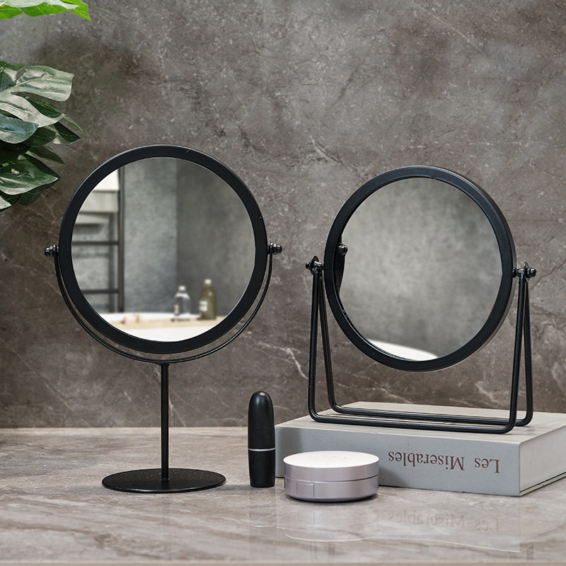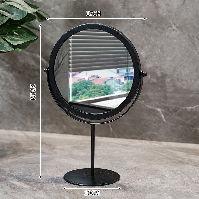 高清化妆镜女生宿舍桌面铁艺梳妆台圆形卧室办公室台式便携小镜子