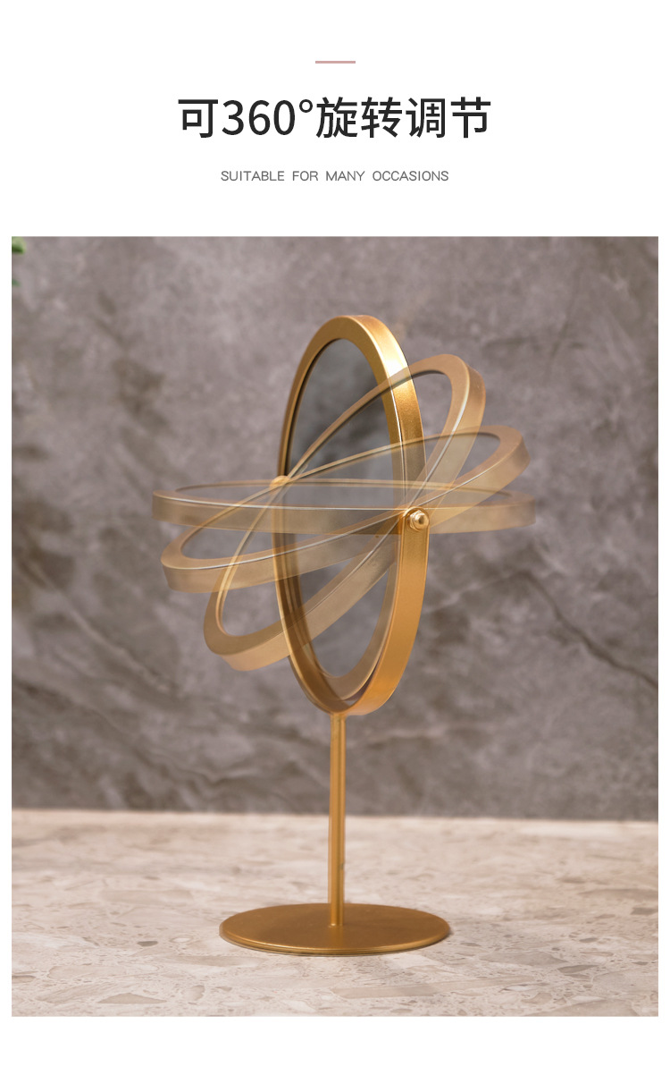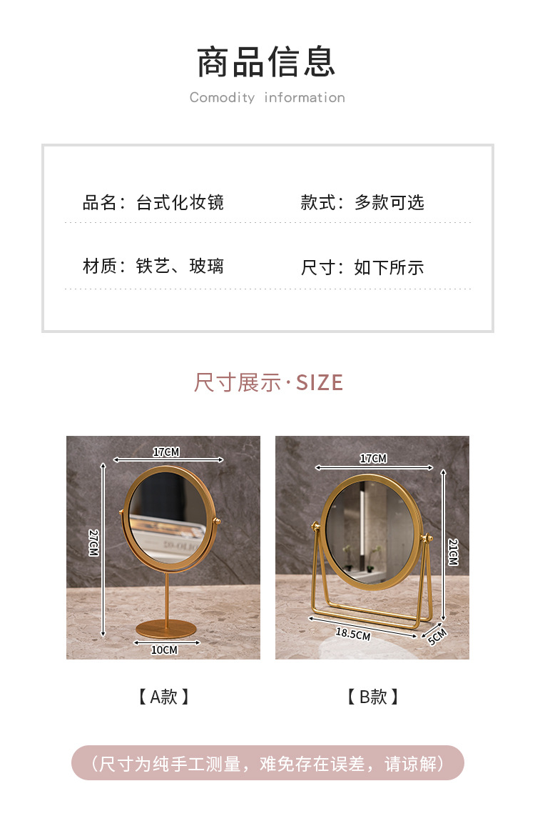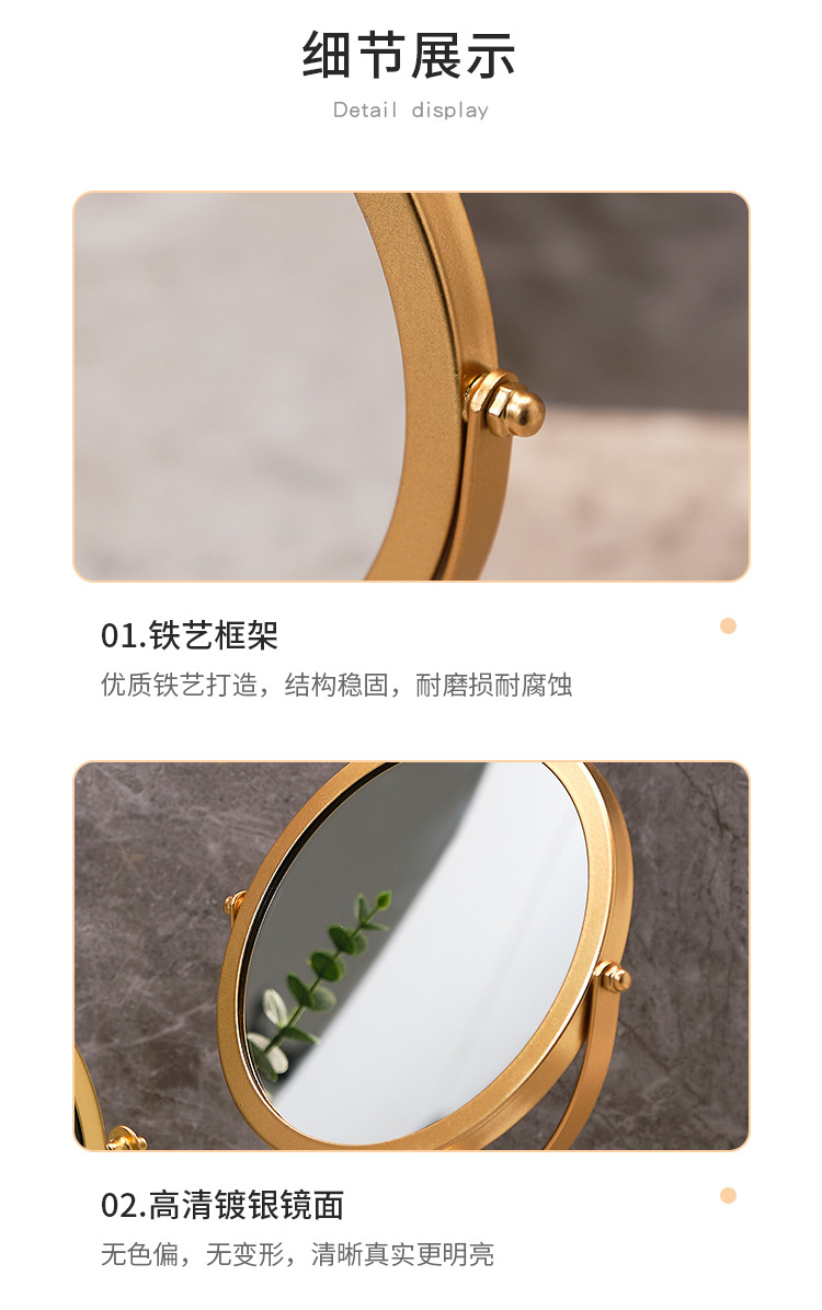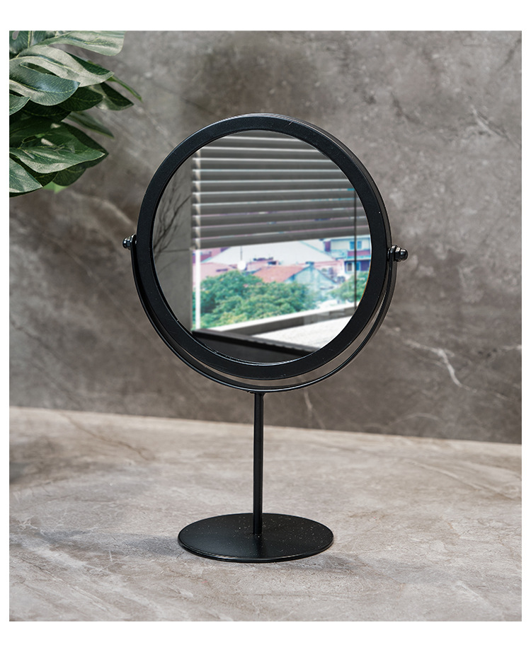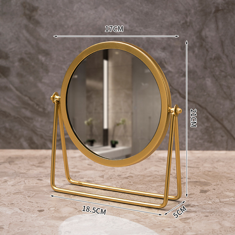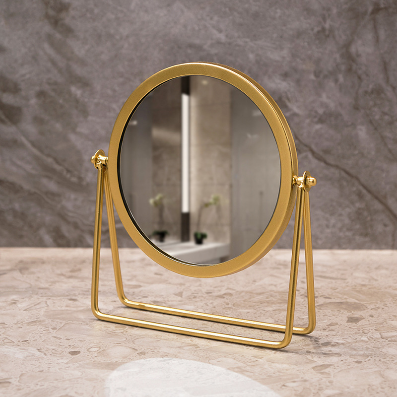 高清化妆镜女生宿舍桌面铁艺梳妆台圆形卧室办公室台式便携小镜子