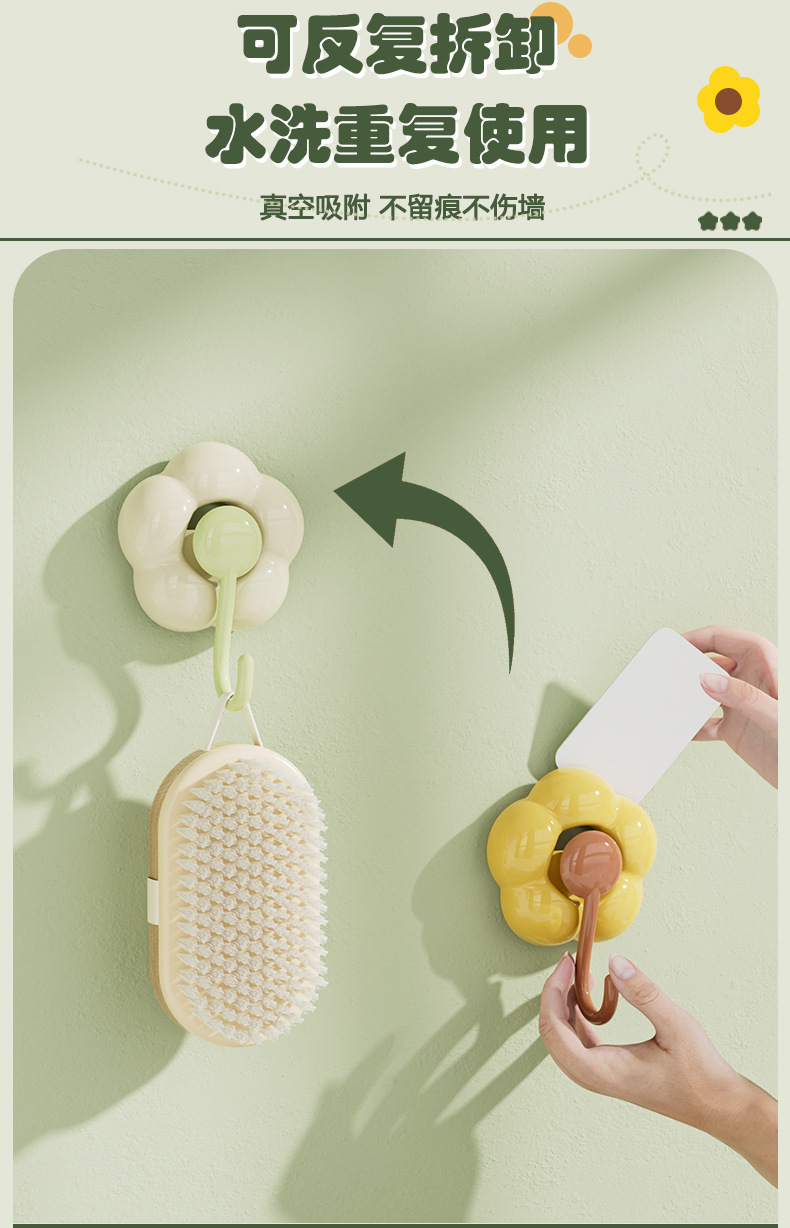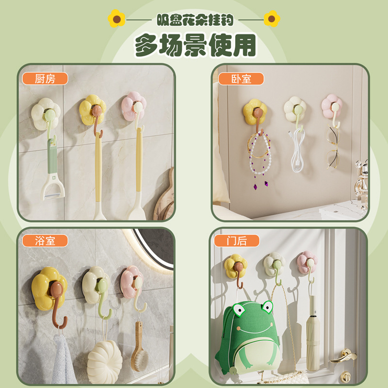 花朵向日葵吸盘挂钩免打孔无痕挂钩真空吸盘厨房客厅卫浴无痕钩子