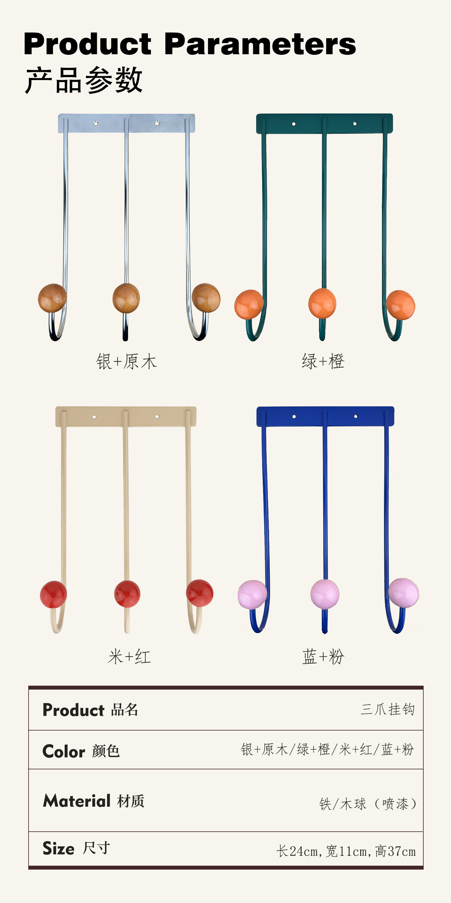 ins创意多巴胺撞色墙面挂钩家用入户玄关挂衣架装饰壁挂客厅卧室
