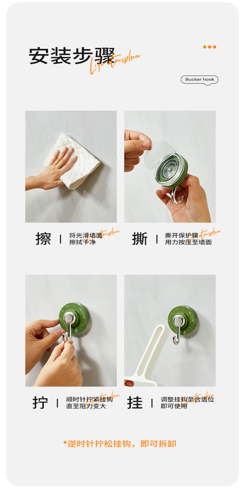 北欧风吸盘挂钩马卡龙免打孔强力承重门后粘钩厨房卫生间墙上钩子
