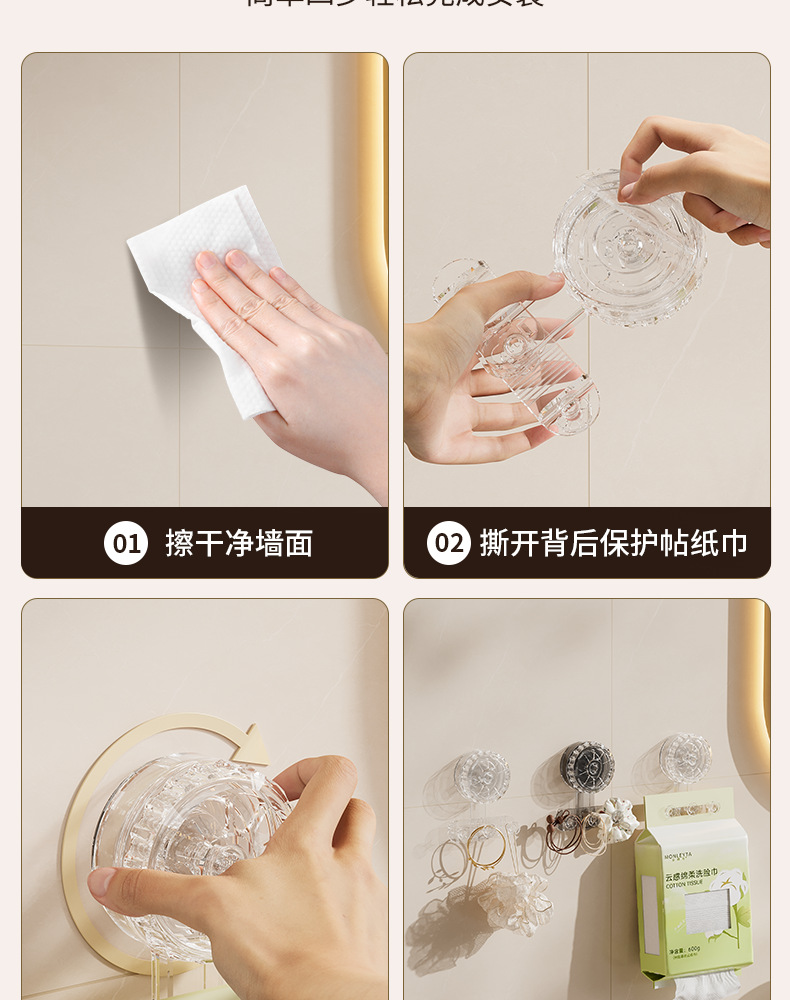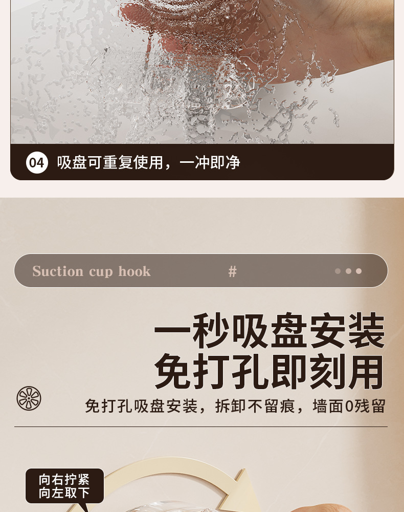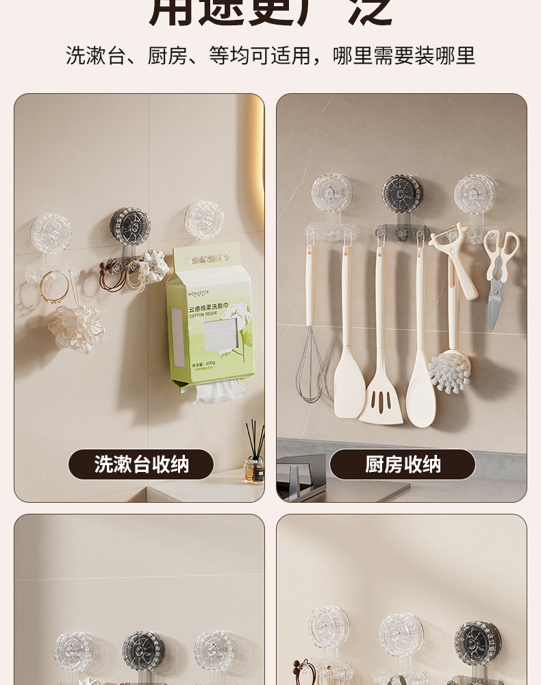 轻奢吸盘洗脸巾挂钩免打孔浴室洁面巾粘钩发圈收纳挂墙架子钩子