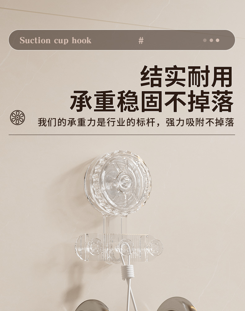轻奢洗脸巾吸盘挂钩【透明灰】