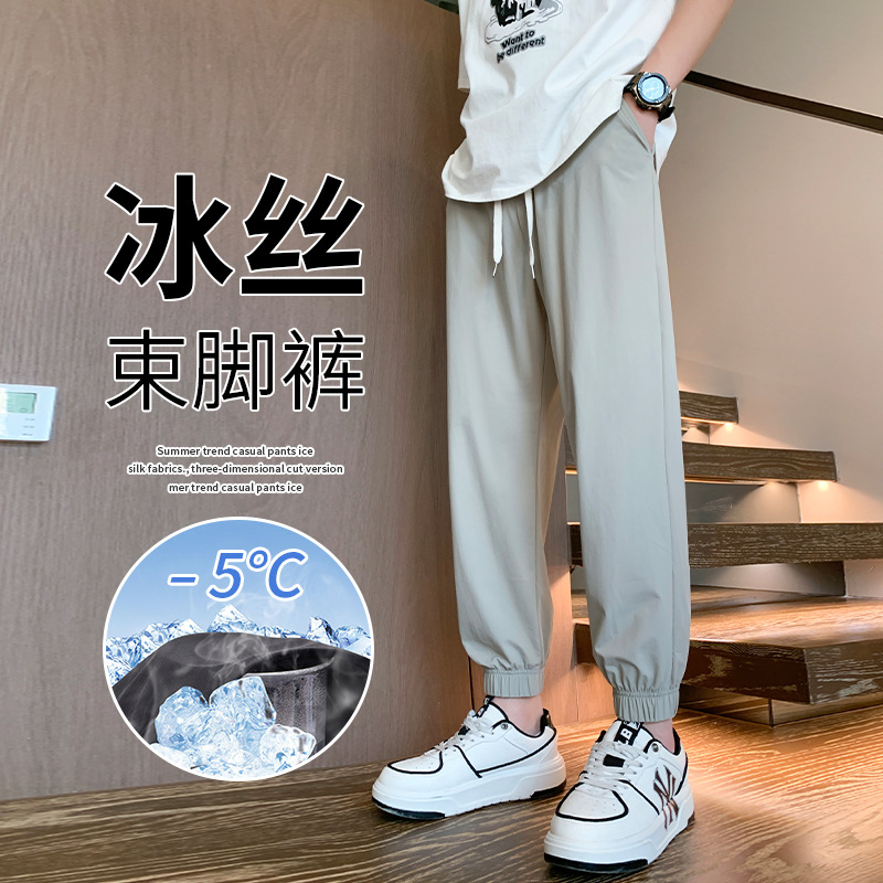冰丝裤子男夏季薄款速干运动裤潮牌新款束脚裤灰色凉感男生休闲裤