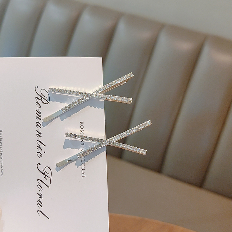 水钻交叉一字夹刘海夹满钻发夹高级感气质发卡边夹碎发夹子发饰品