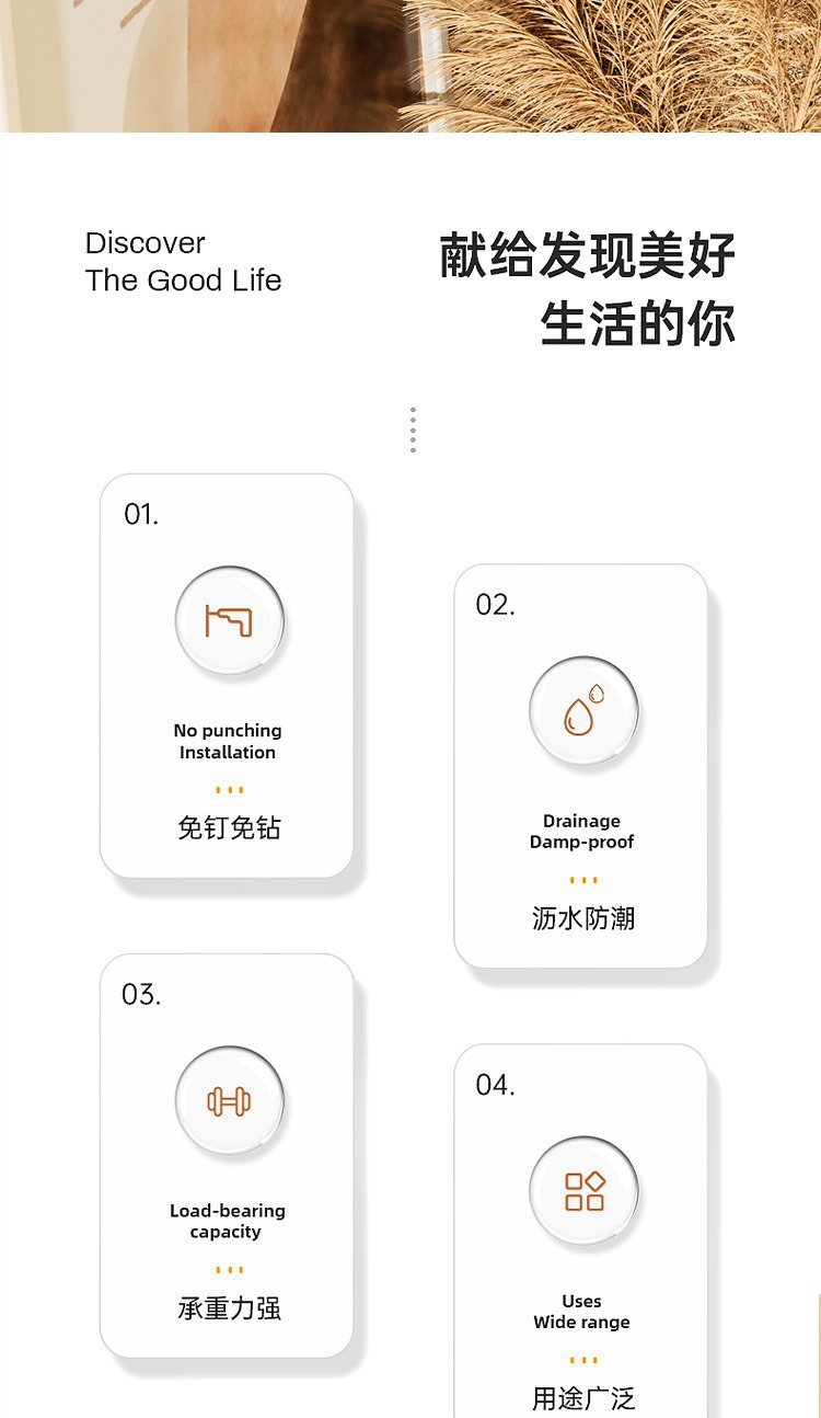 榉木奶白J型(免打孔配胶水)
