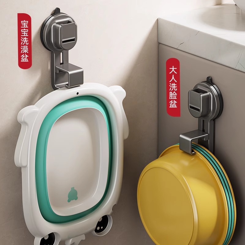 吸盘脸盆挂钩盆子收纳架卫生间置物架厕所浴盆免打孔浴室挂盆神器