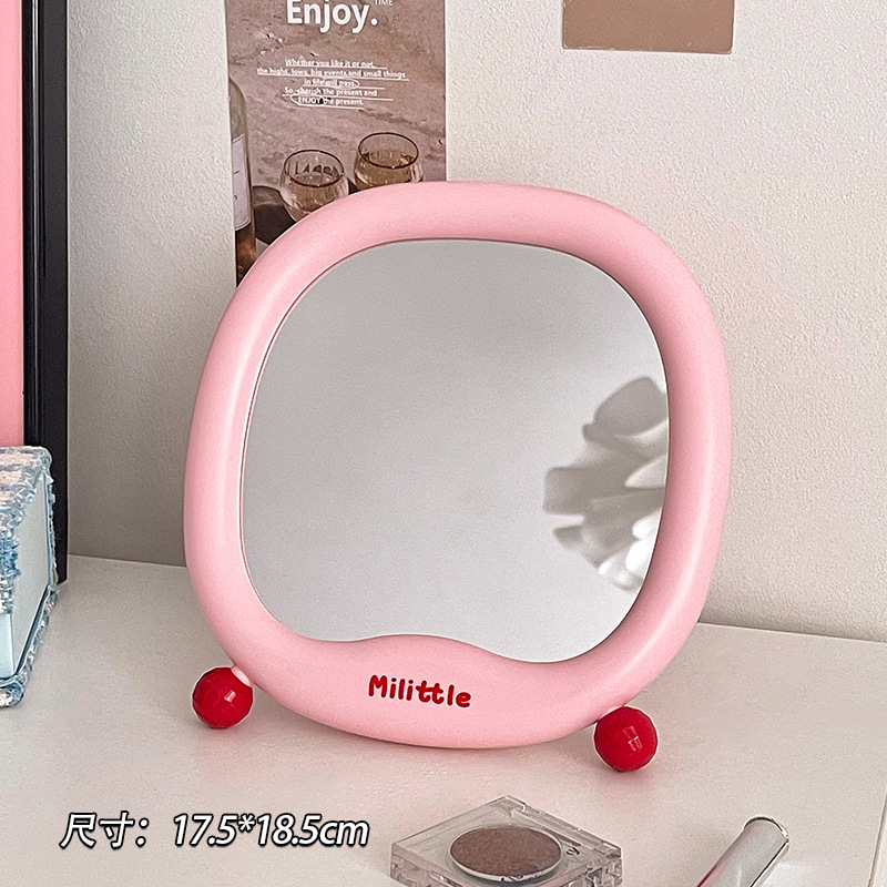 少女心桌面台式化妆镜办公室学生宿舍家用可立小型镜子简约梳妆镜
