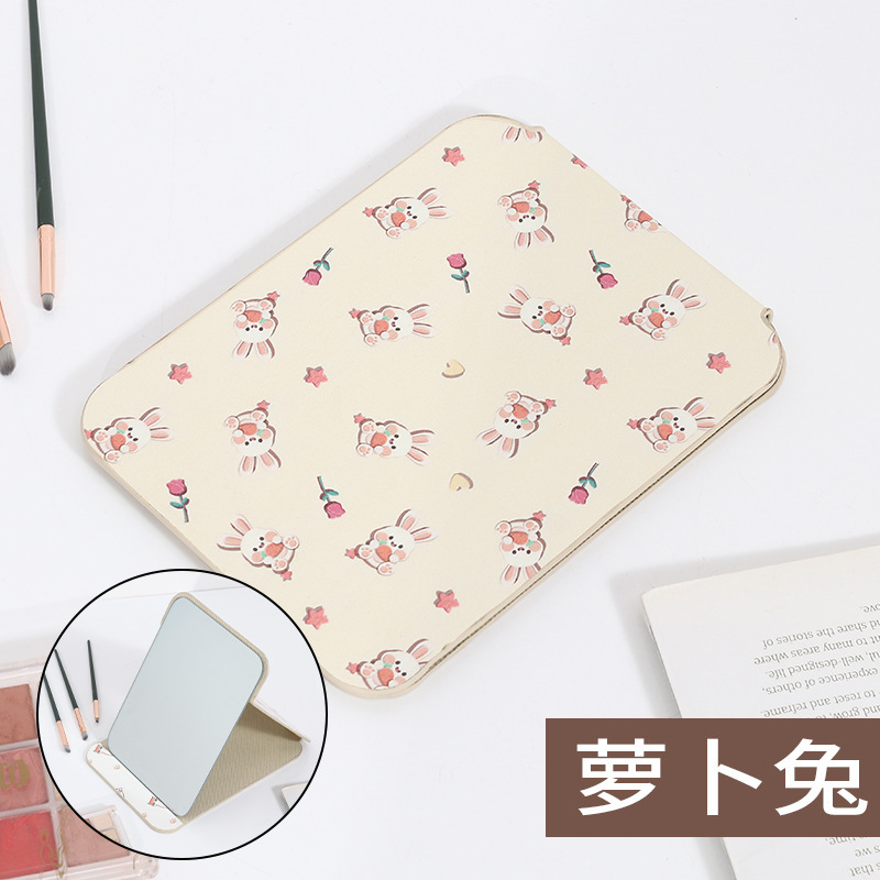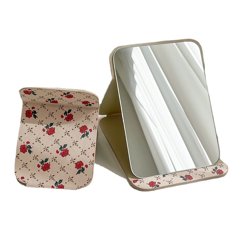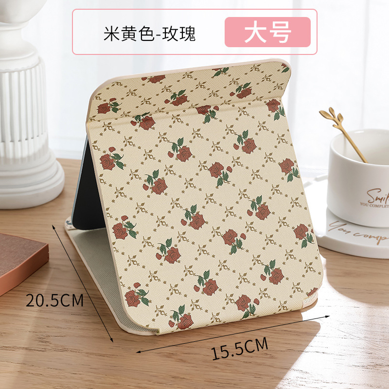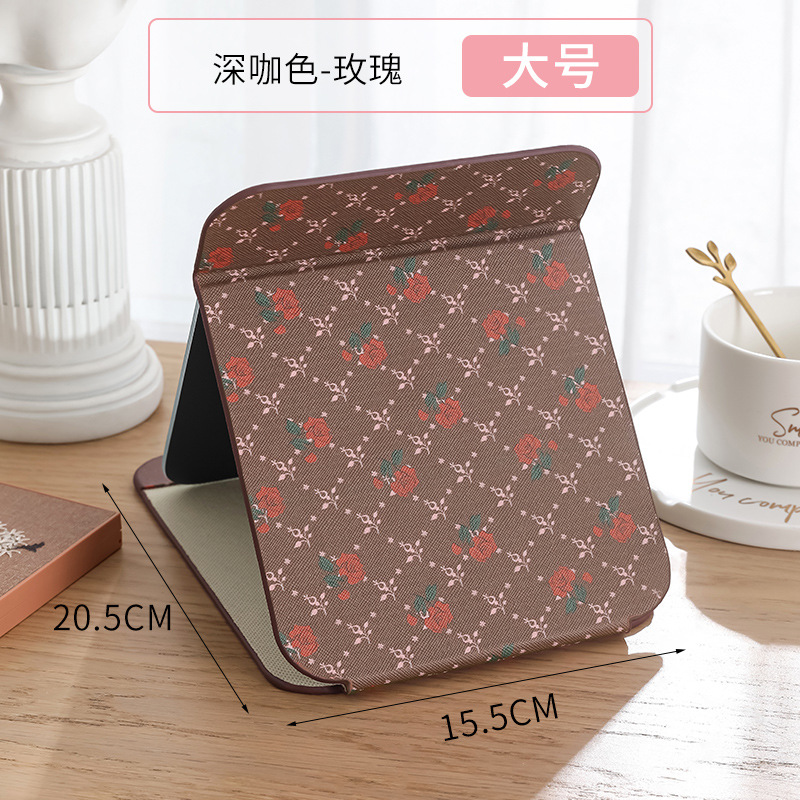 便携随身PU复古折叠镜卧室宿舍桌面台式化妆镜高清梳妆镜子化妆镜