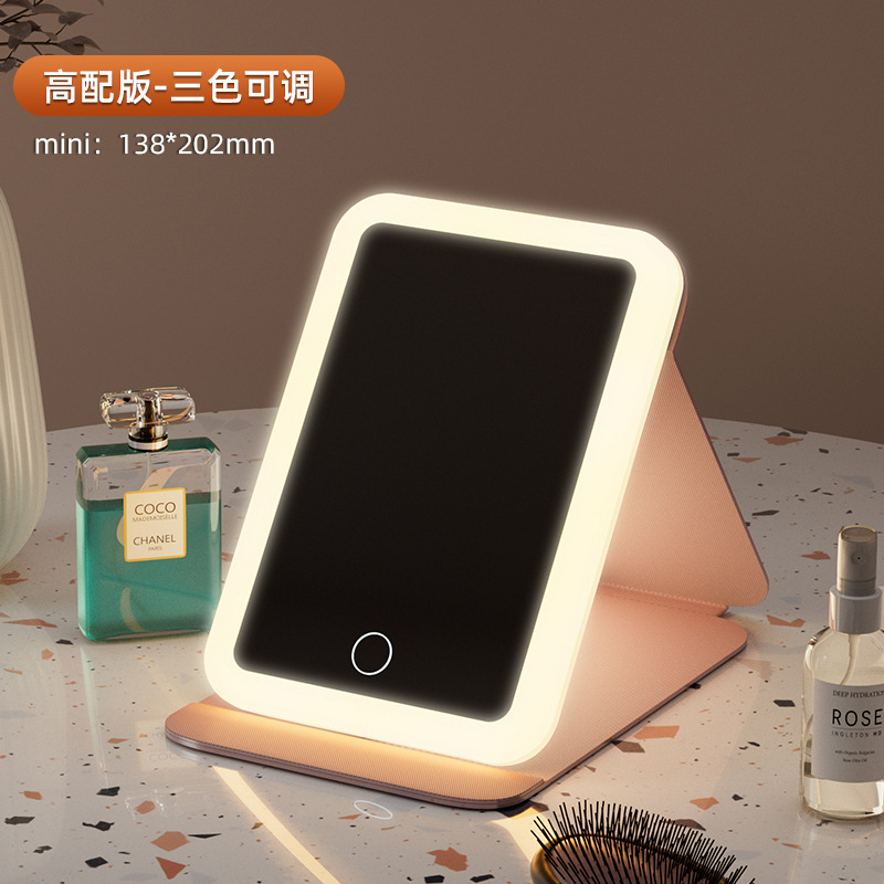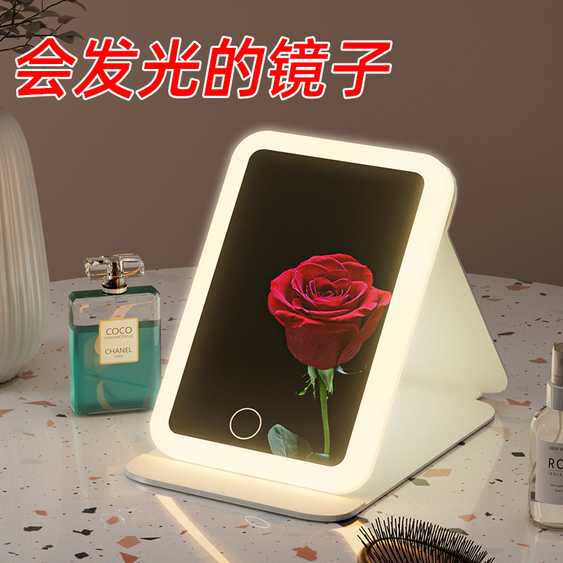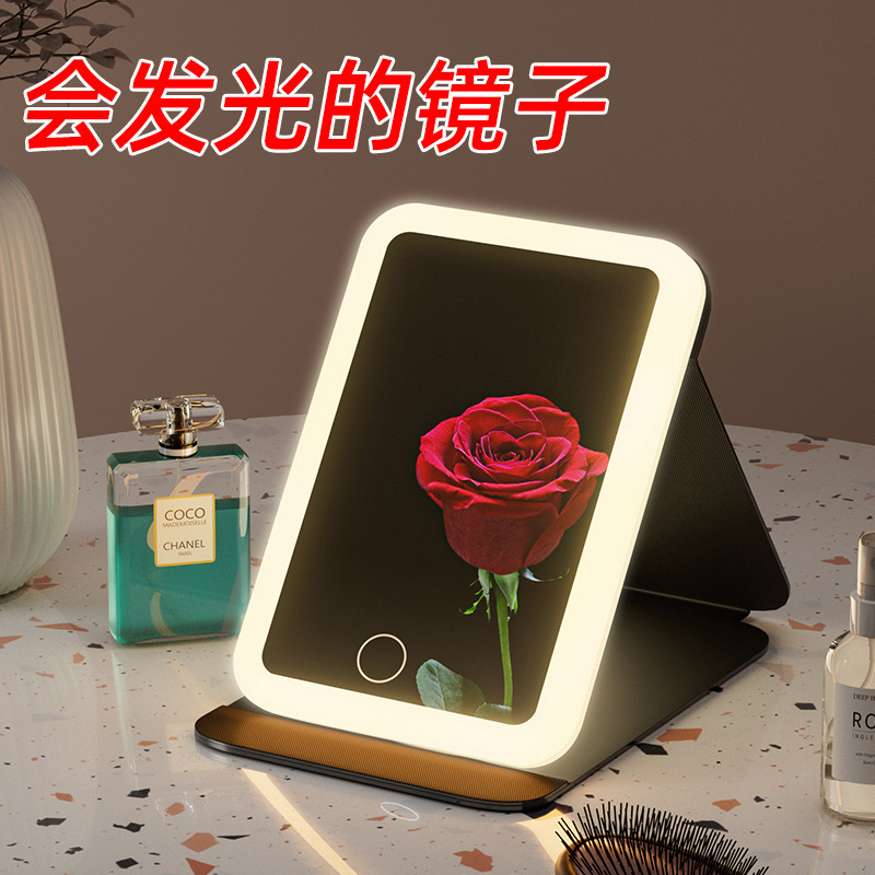 新款台式手动便携可充电带电池的手持led化妆镜子带台灯折叠礼品