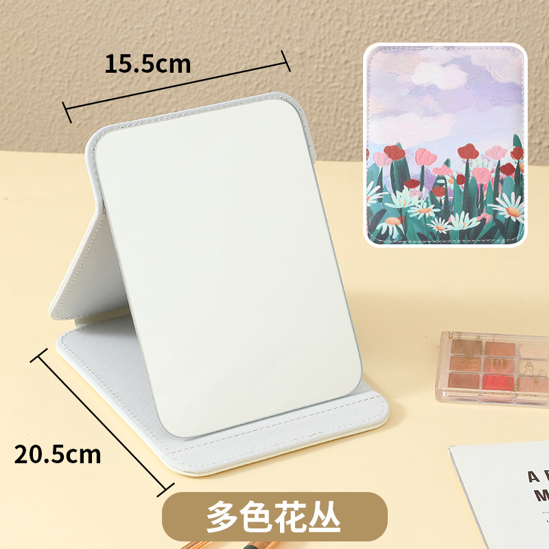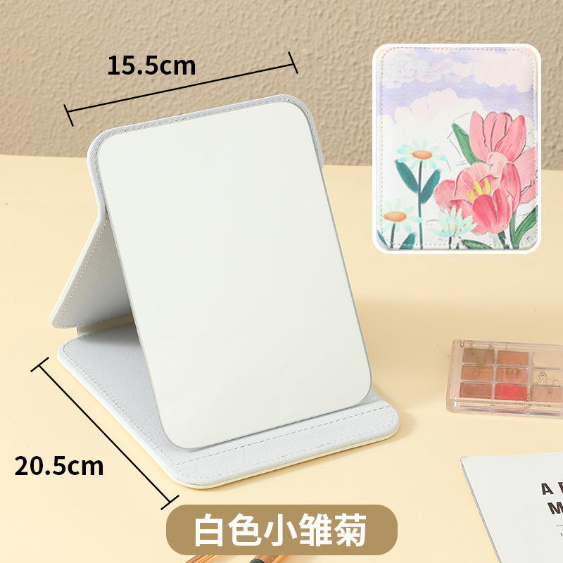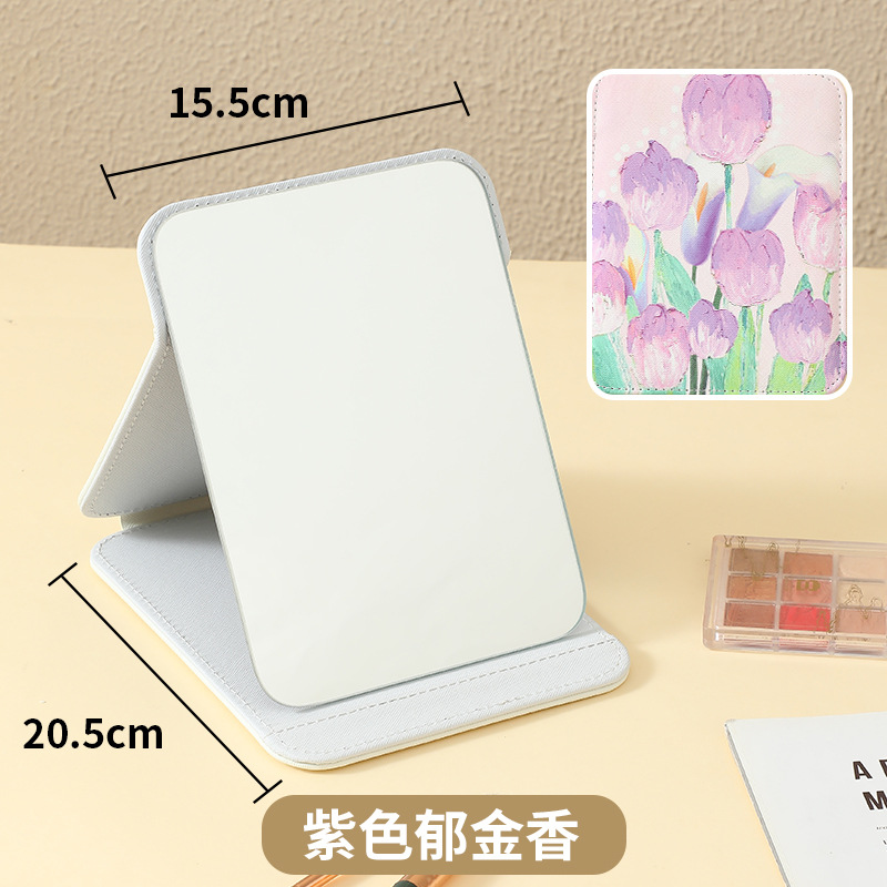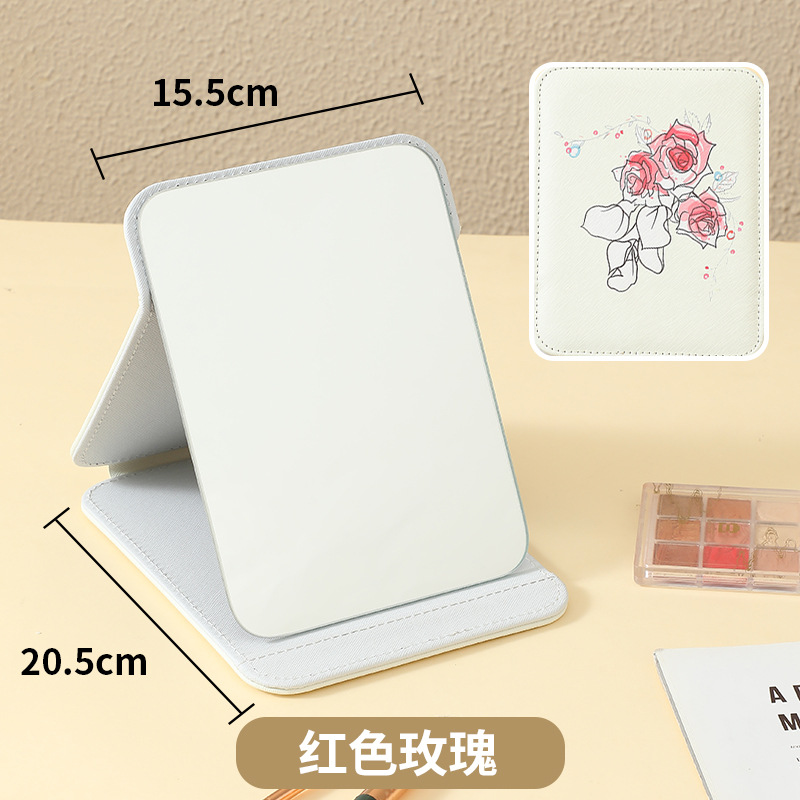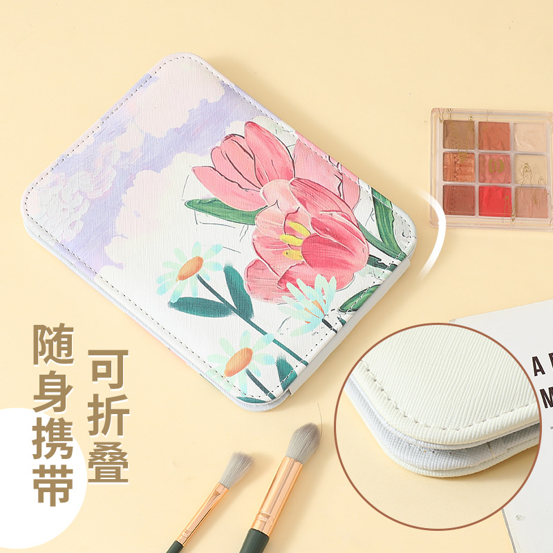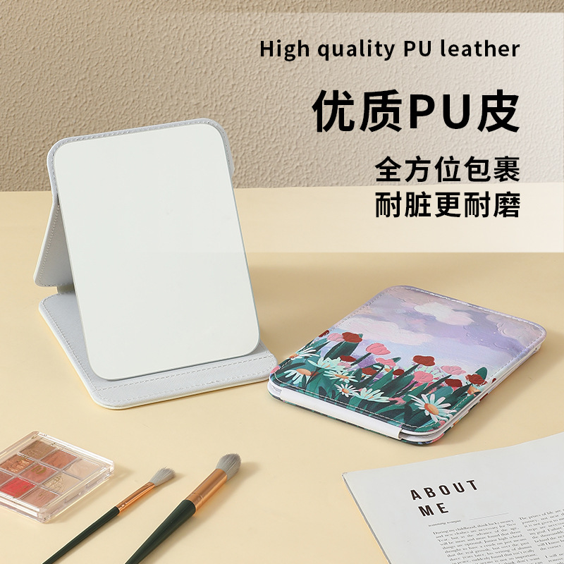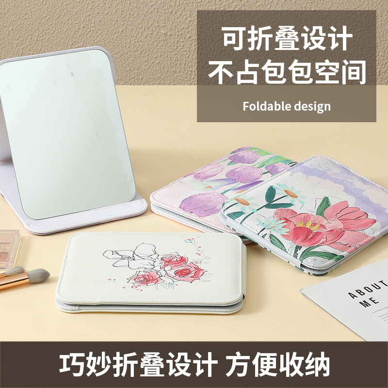 新款高级皮革化妆镜镜子可随身折叠便携收纳家用印花桌面台式宿舍