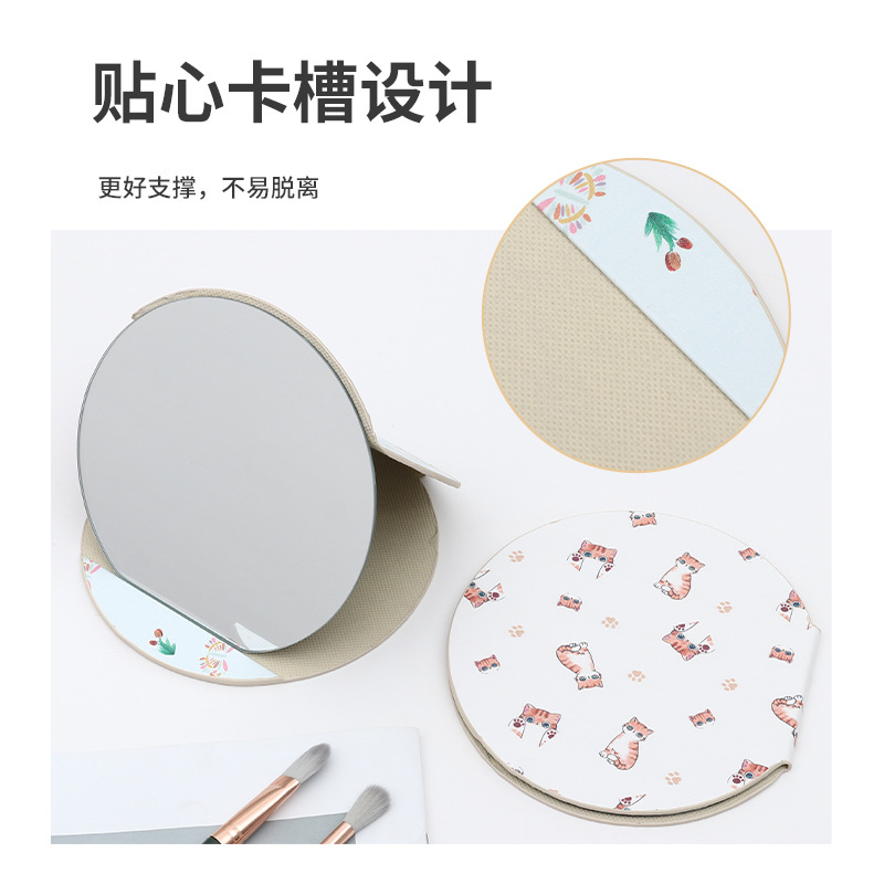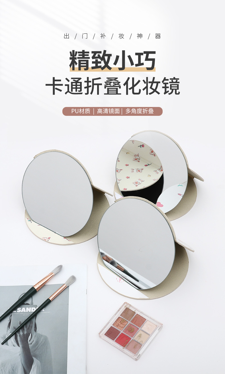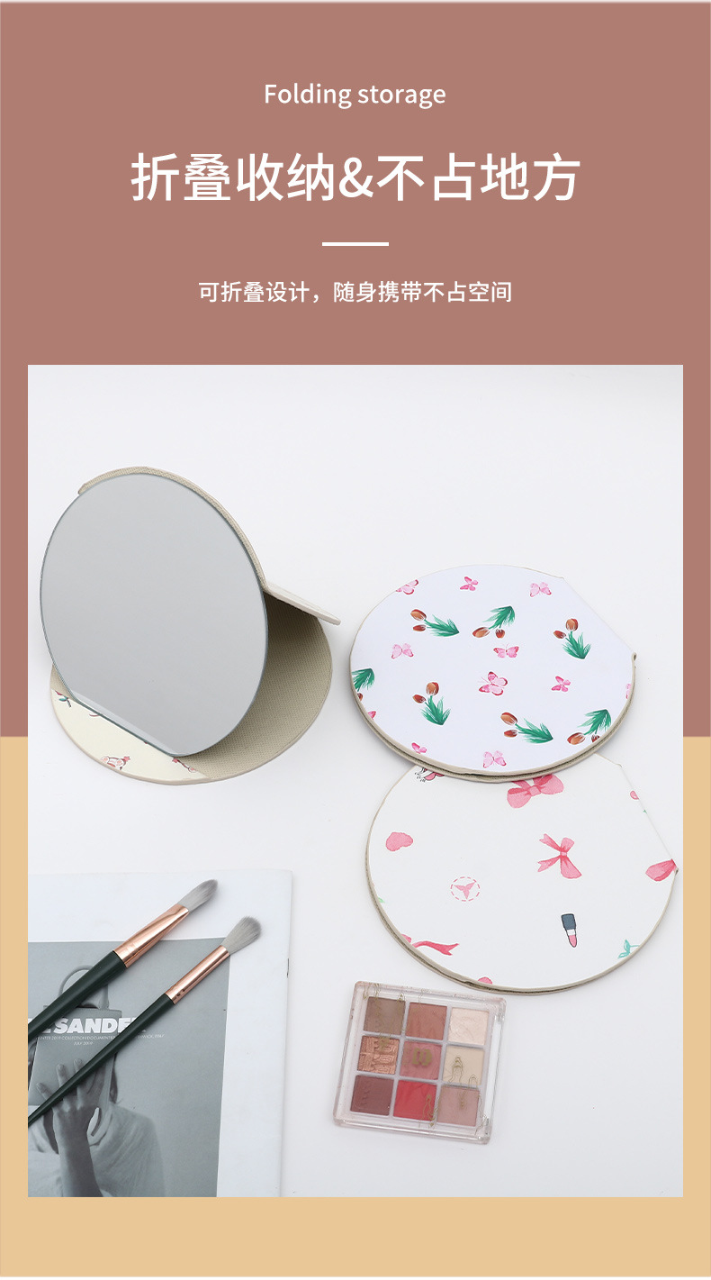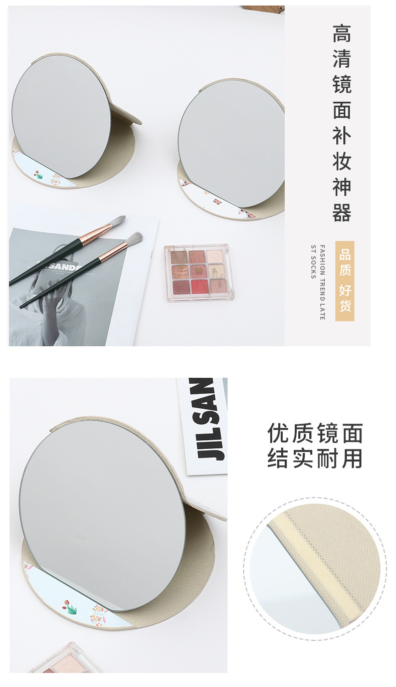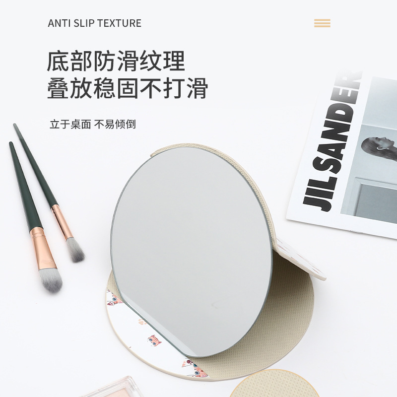 异形桌面台式镜子随身便携学生宿舍化妆镜圆形家用可收纳折叠