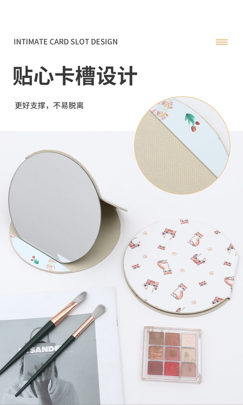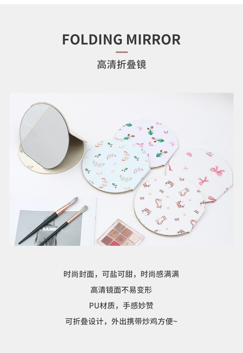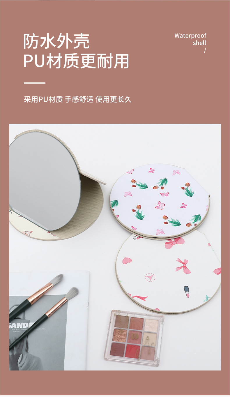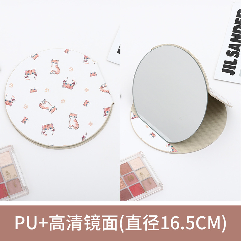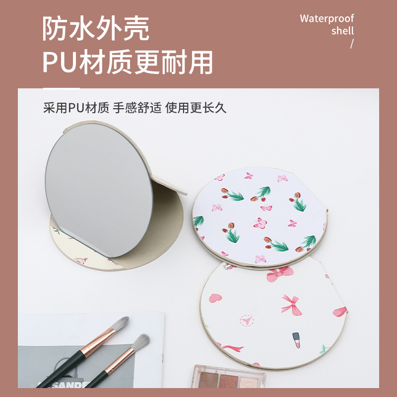 异形桌面台式镜子随身便携学生宿舍化妆镜圆形家用可收纳折叠
