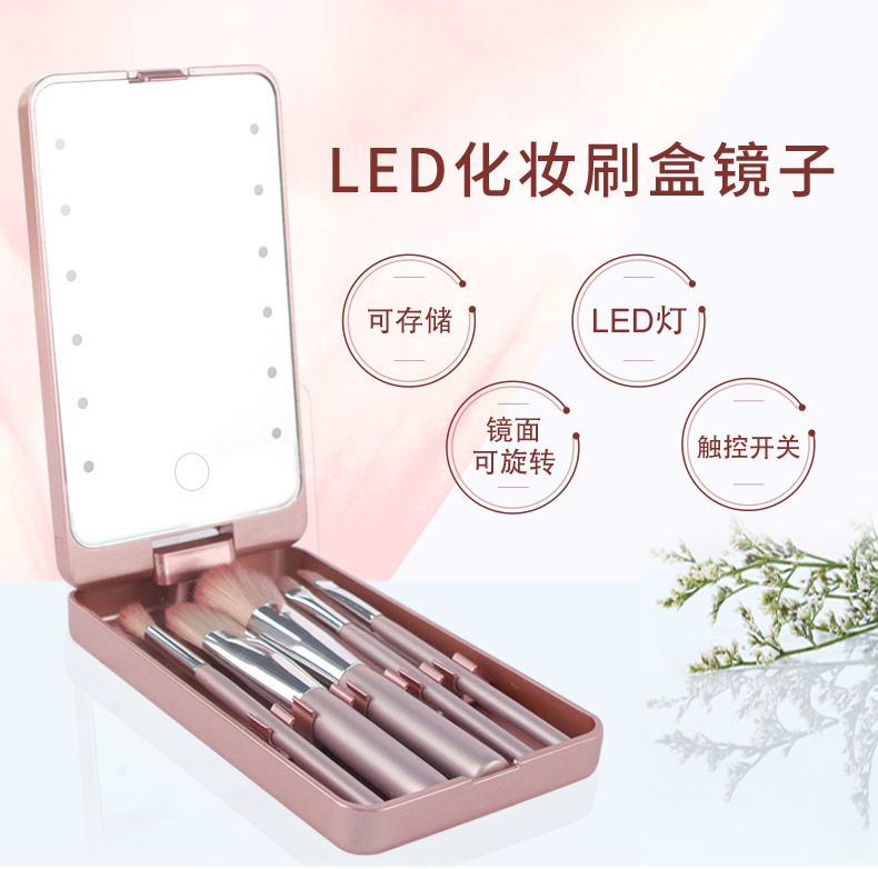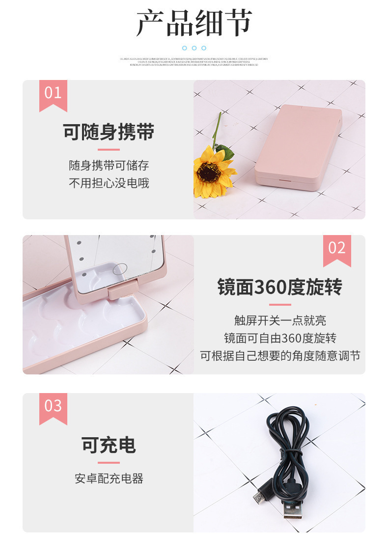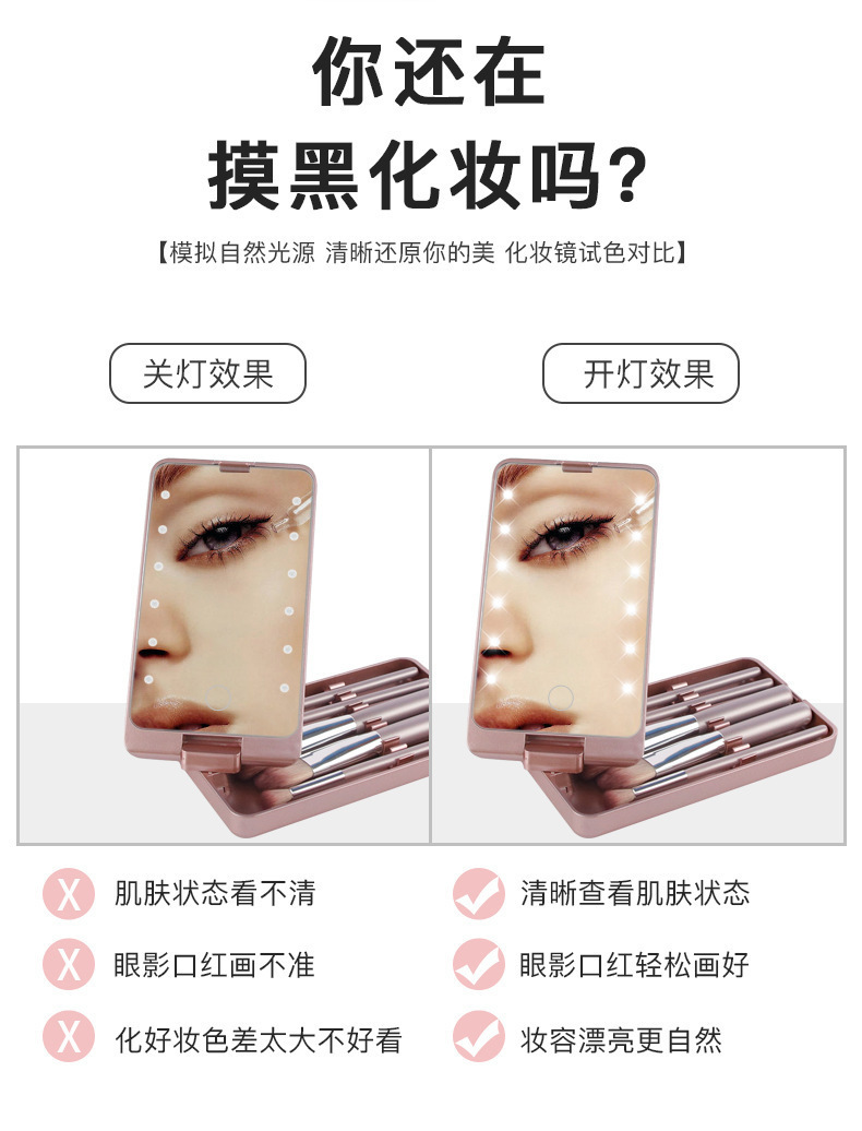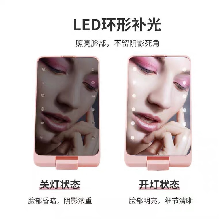 跨境led化妆镜带灯小镜子便携迷你随身镜梳妆镜台式桌面折叠镜