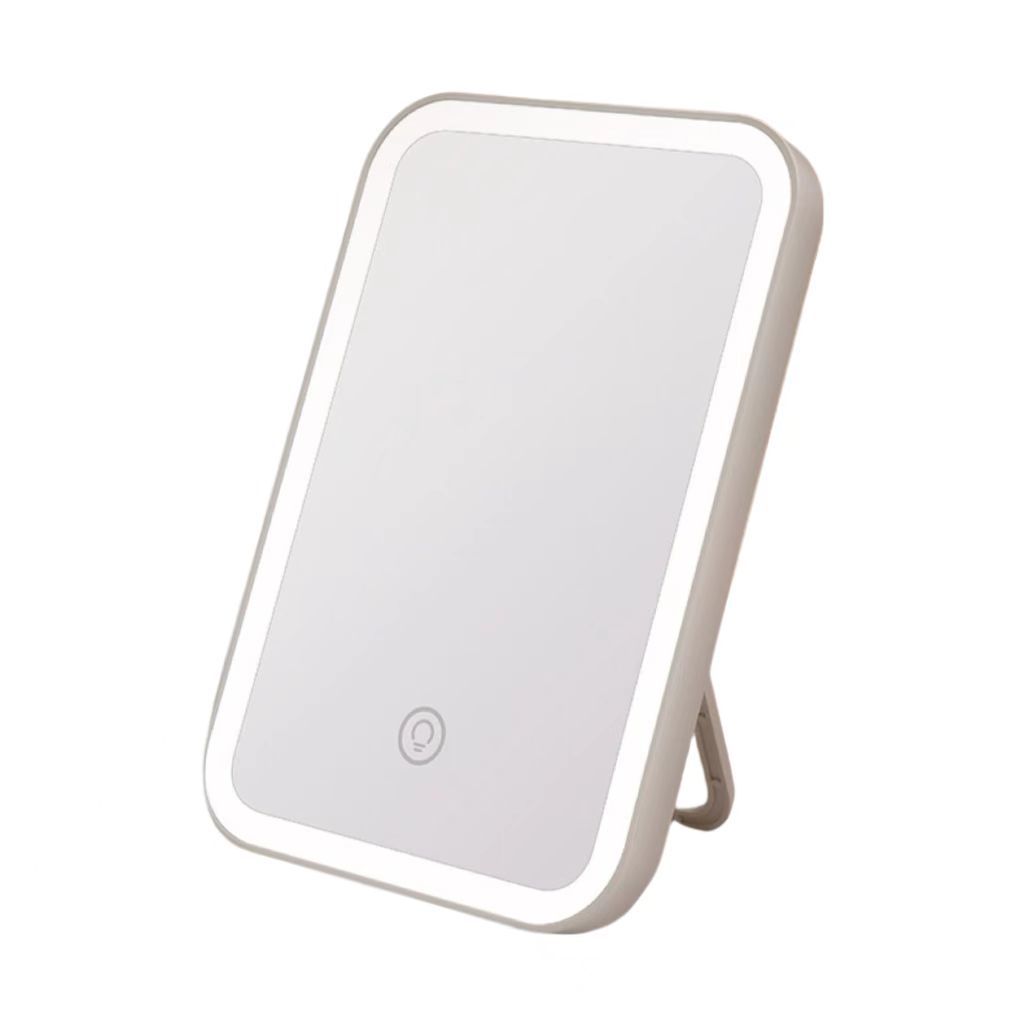 LED化妆镜批发桌面高清镜子宿舍台式简易折叠便携梳妆镜三色充电