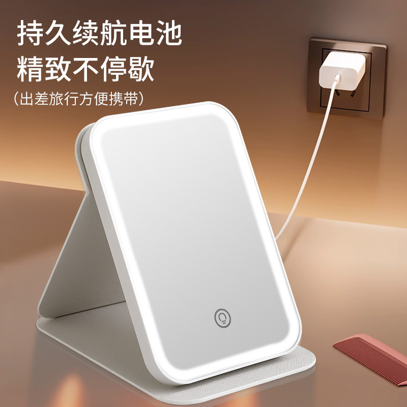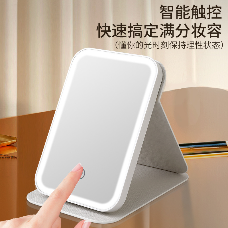 LED化妆镜带灯台式梳妆镜女生补光桌面梳妆镜折叠网红宿舍美妆镜