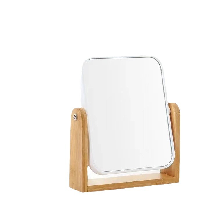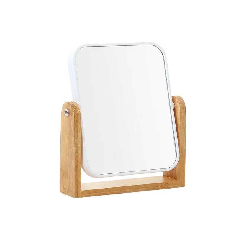 简约桌面梳妆镜学生宿舍台式竹木镜子可调节旋转折叠式公主镜