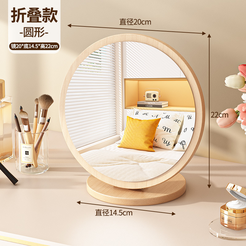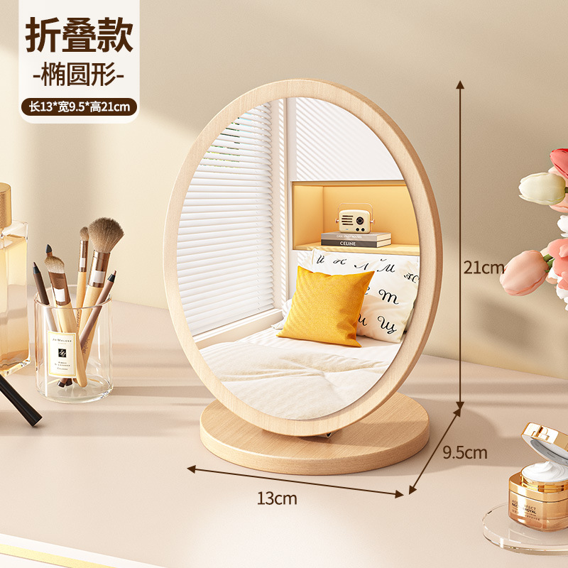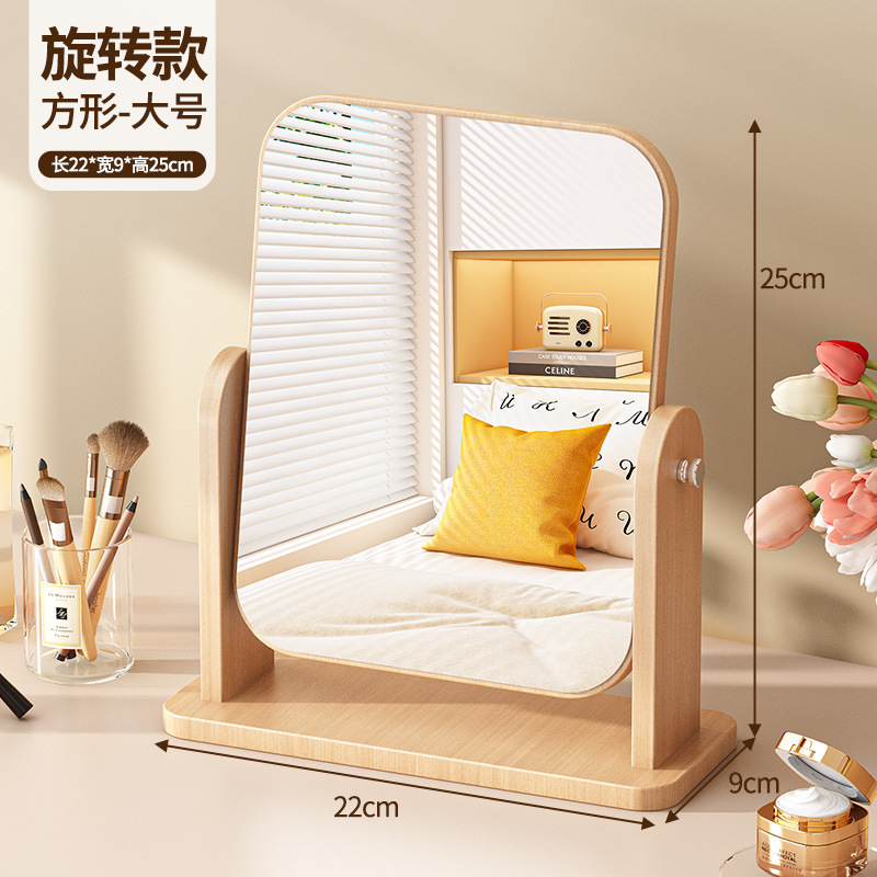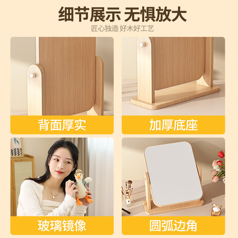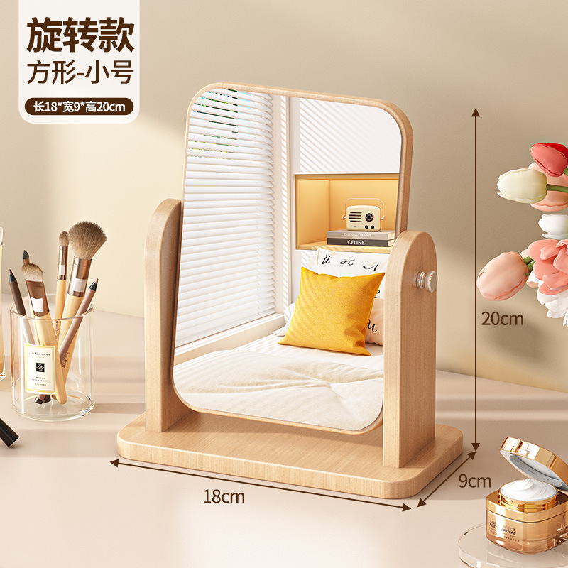 木质元素镜子简约台式化妆镜可旋转家用学生宿舍随身桌面梳妆镜子
