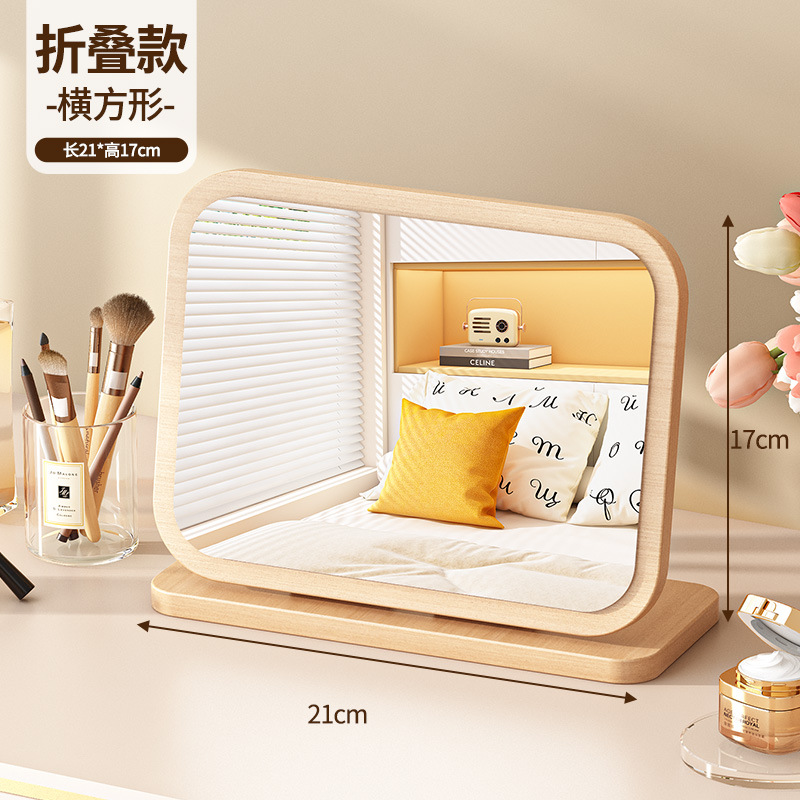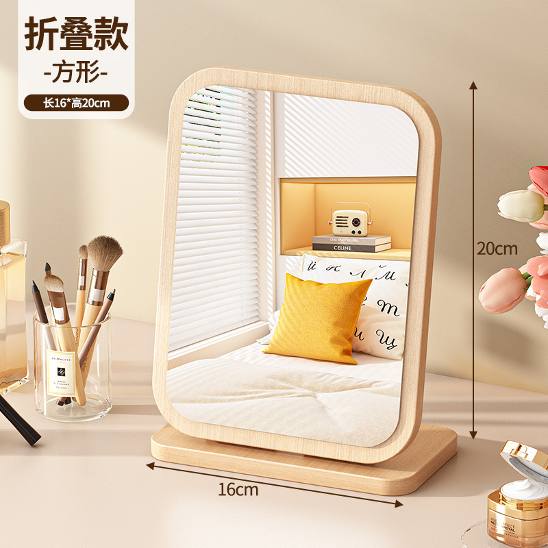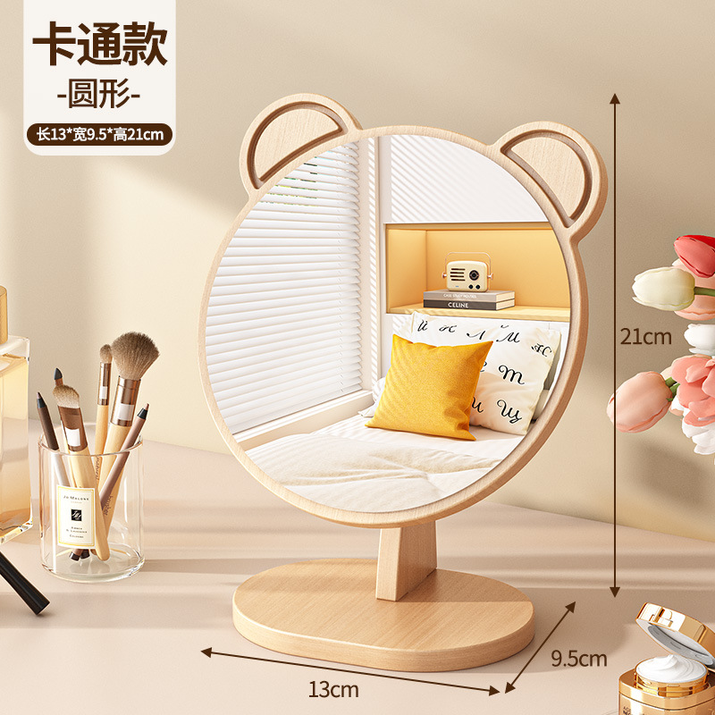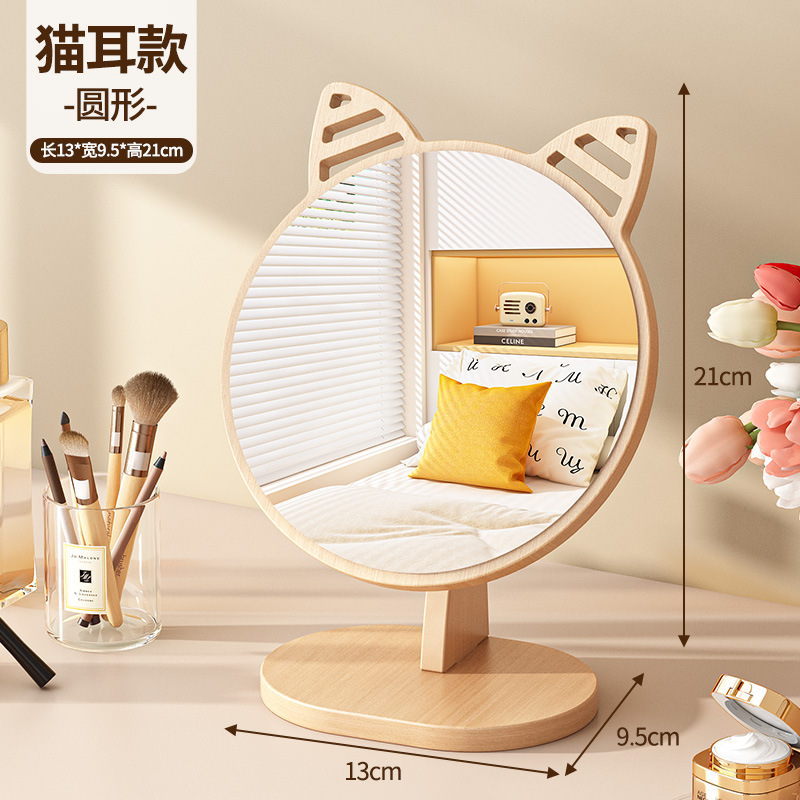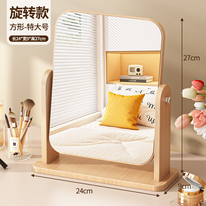 木质元素镜子简约台式化妆镜可旋转家用学生宿舍随身桌面梳妆镜子