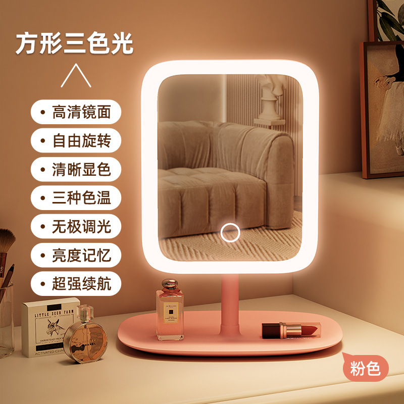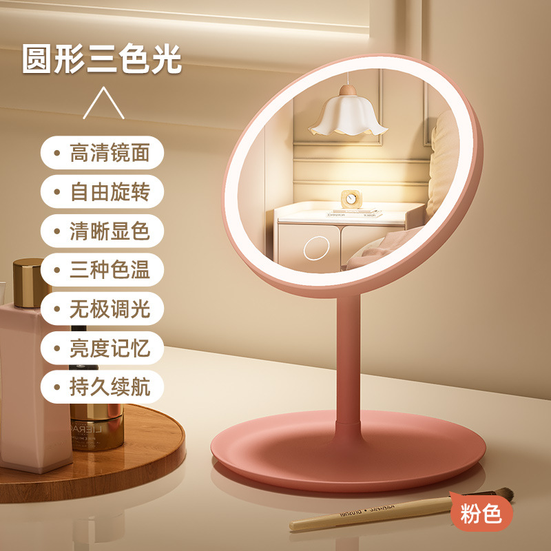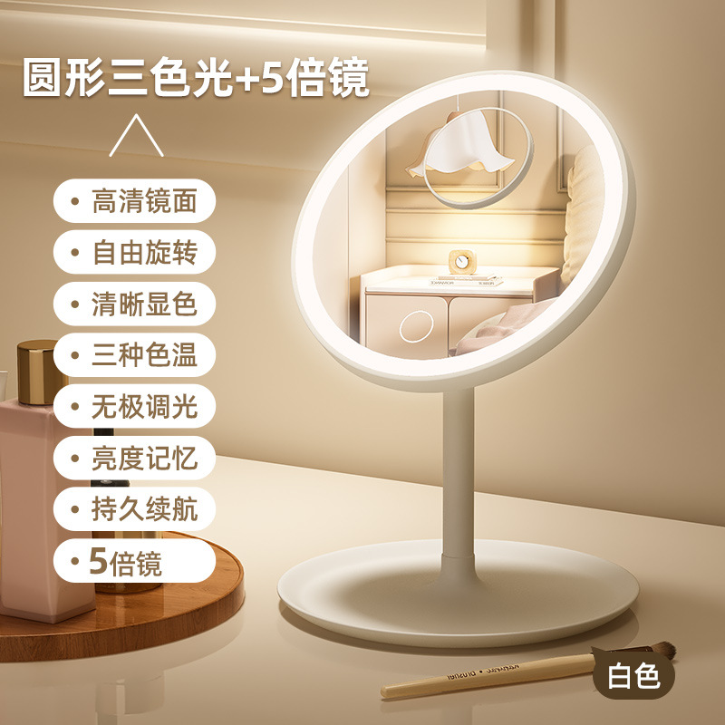 led智能化妆镜带灯女生卧室梳妆台梳妆镜学生宿舍桌面补光小镜子