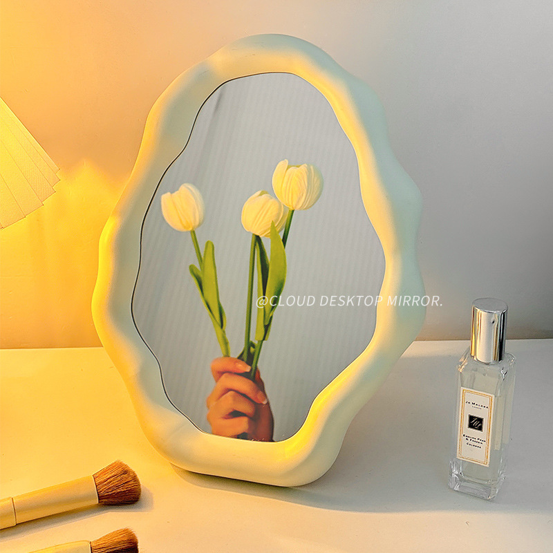 奶油风云朵化妆镜桌面台式办公室高清梳妆镜学生宿舍梳妆台镜子女