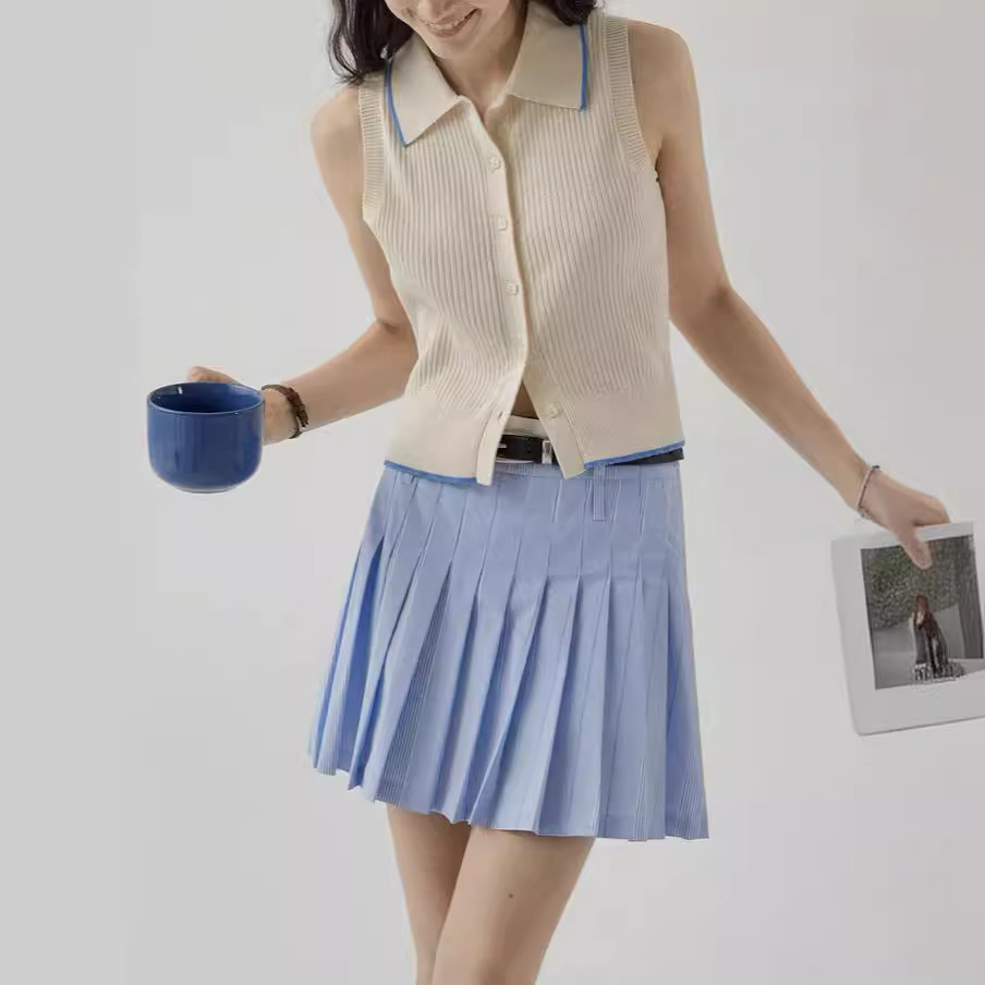 Polo领针织吊带复古美式小背心甜美上衣贴身内搭外穿女夏季