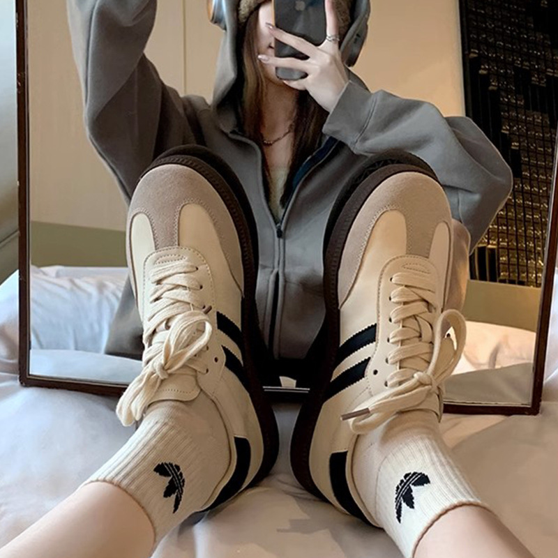 真皮德训鞋子女春季新款平底小白鞋板鞋软底休闲鞋女款运动鞋