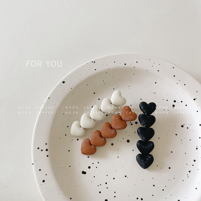 韩国爱心拼接布艺爱心一字夹立体桃心边夹刘海夹ins时尚复古发夹