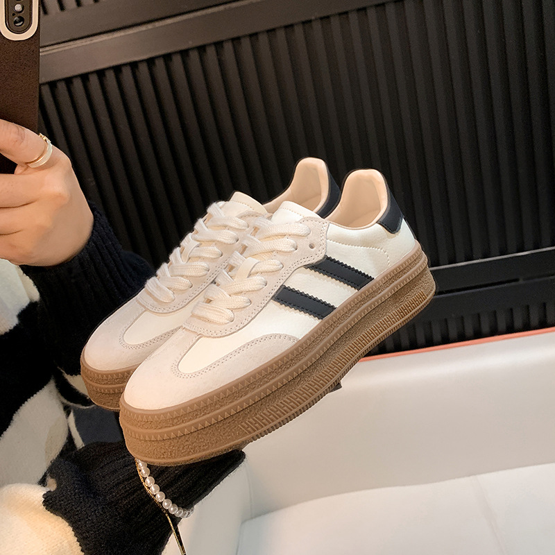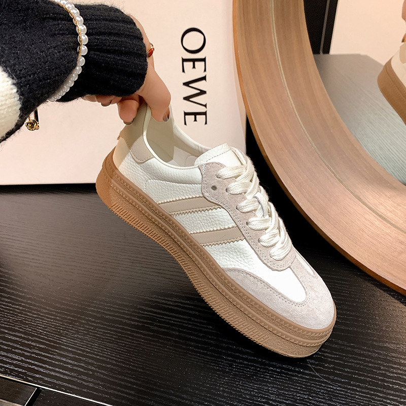 真皮德训鞋春夏新款休闲板鞋厚底运动小白鞋女复古阿甘鞋单鞋
