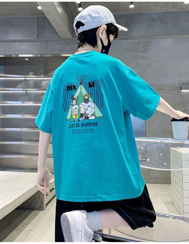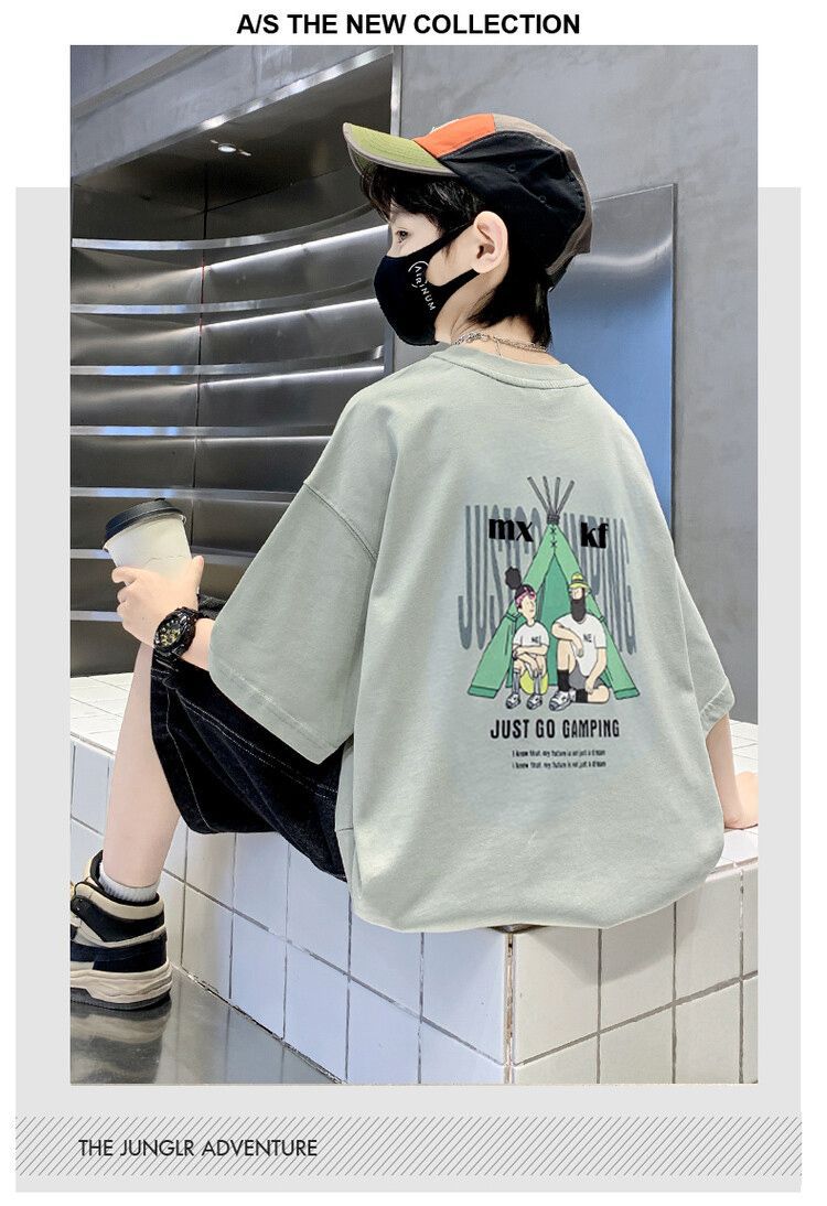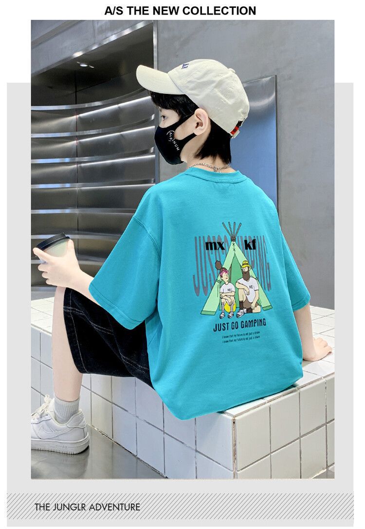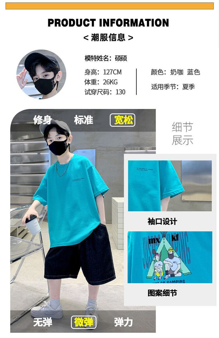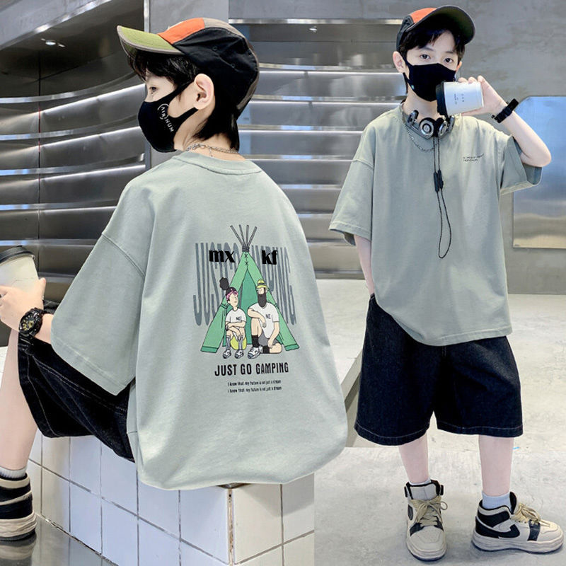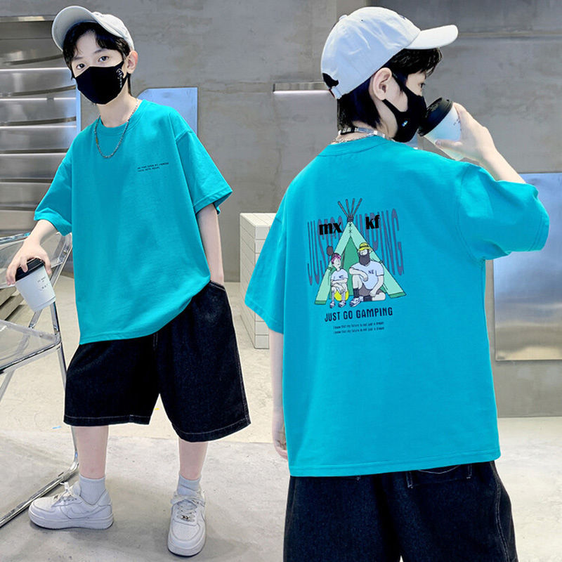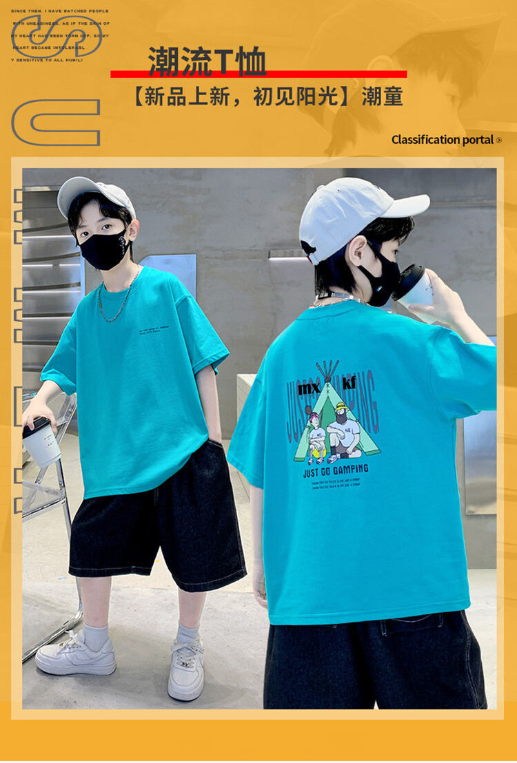 童装男女短袖t恤纯棉前后印花夏季新款儿童宝宝半袖上衣中大童