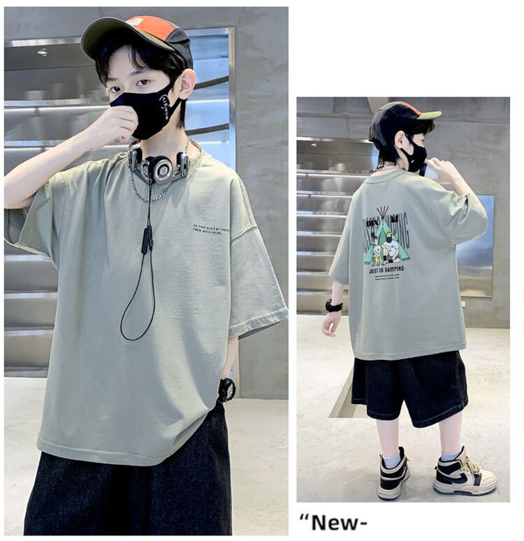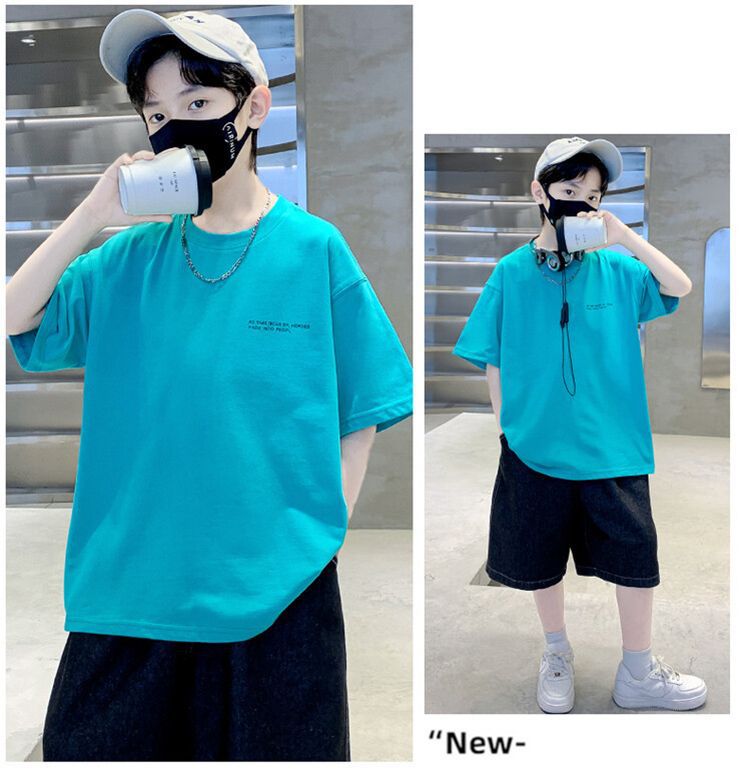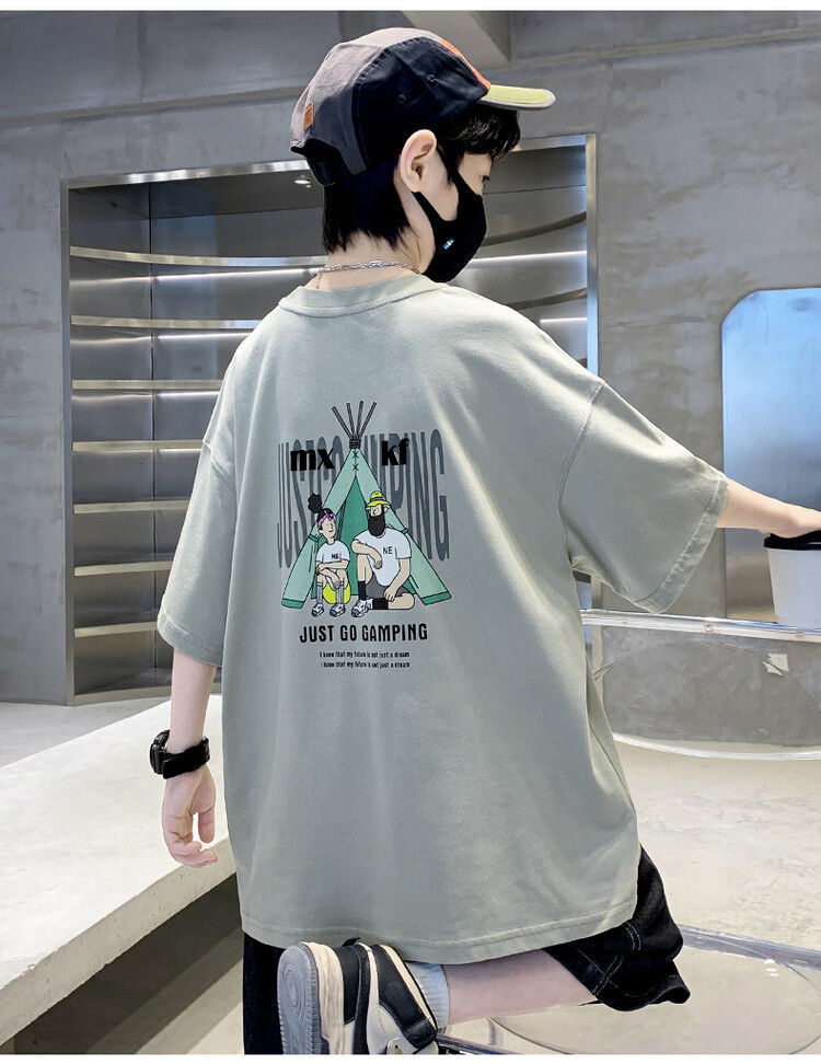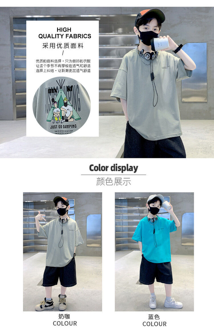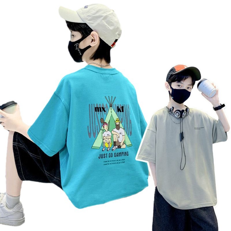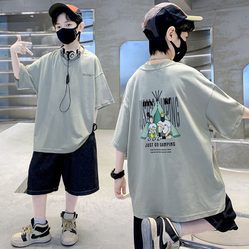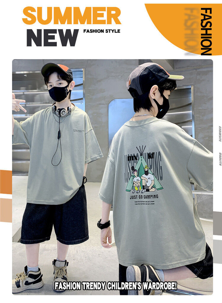 童装男女短袖t恤纯棉前后印花夏季新款儿童宝宝半袖上衣中大童