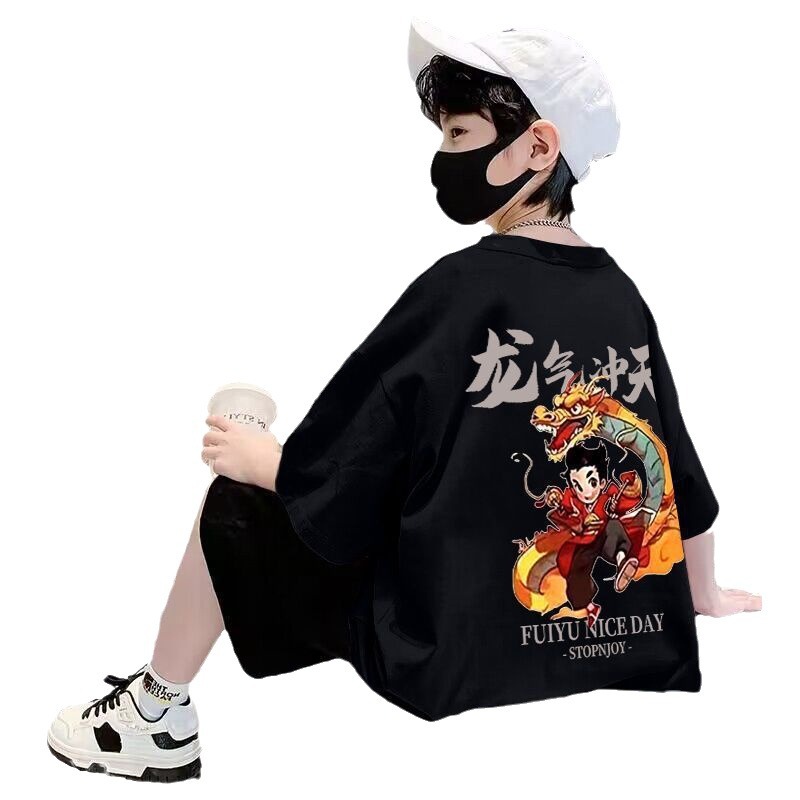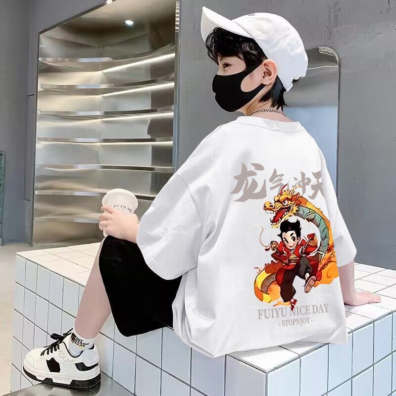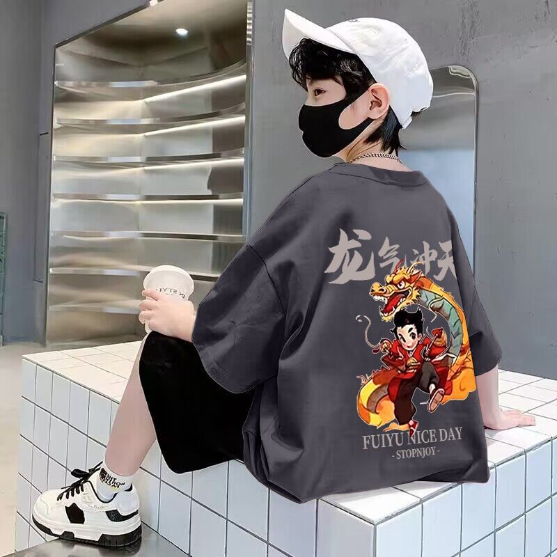 棉质男童短袖t恤夏季新款潮范酷帅宽松帅气卡通中大童半袖儿童潮