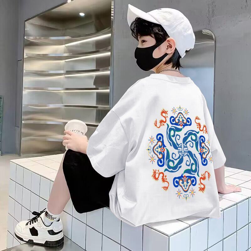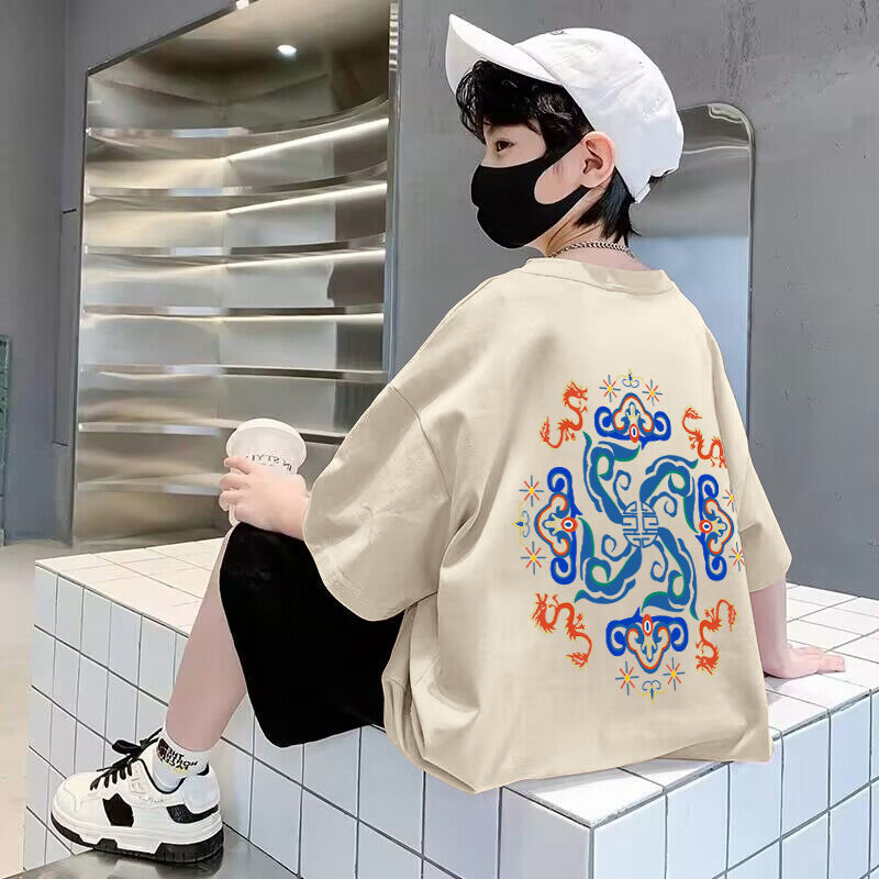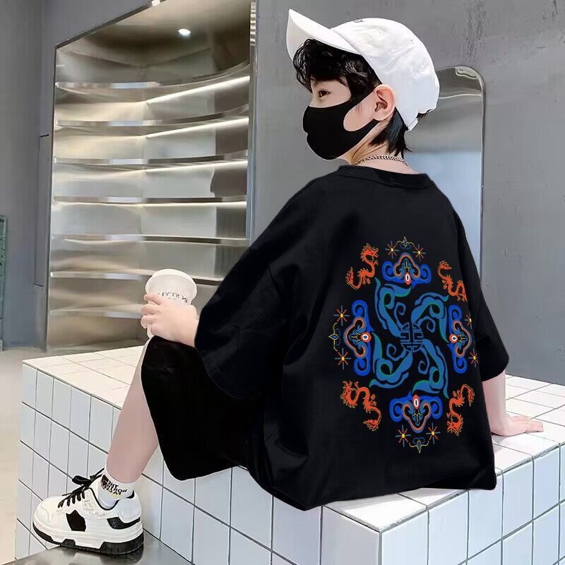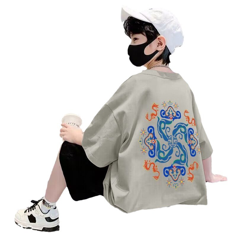 男童短袖棉质t恤夏季新款前后印花宽松帅气卡通中大童半袖儿童潮
