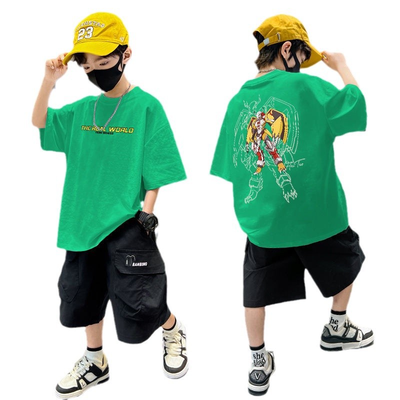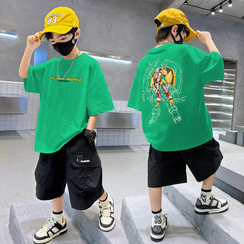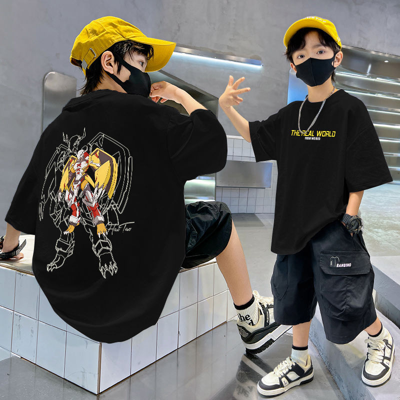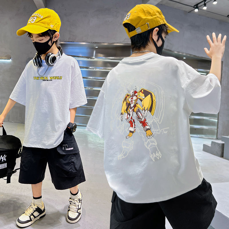 童装男女短袖t恤棉质夏季前后印花新款儿童宝宝半袖上衣中大童潮