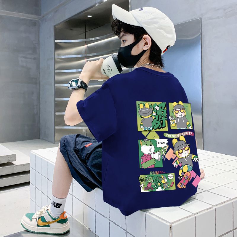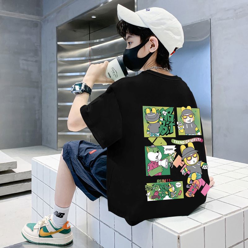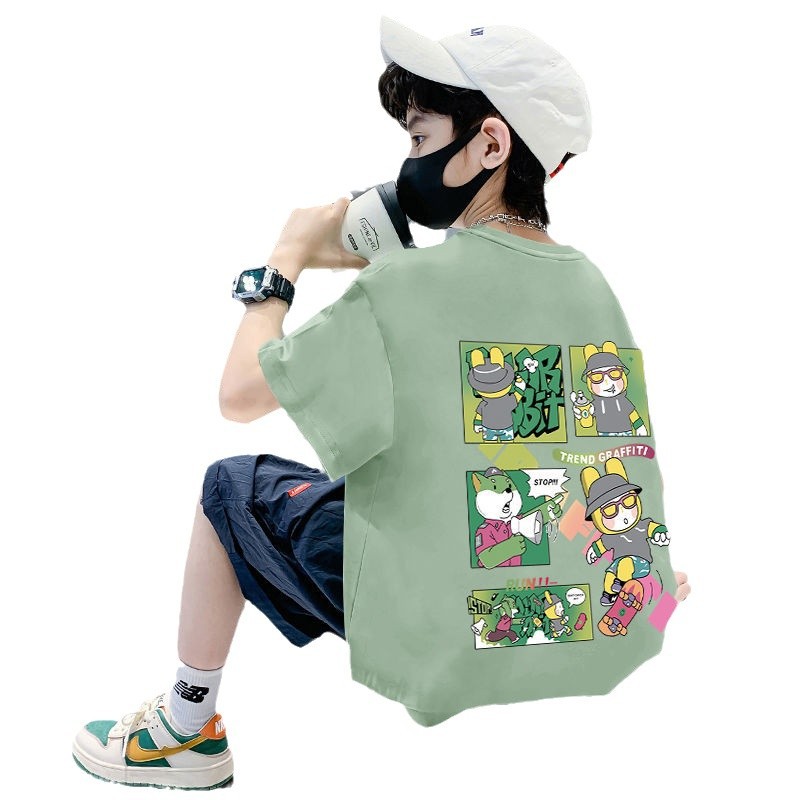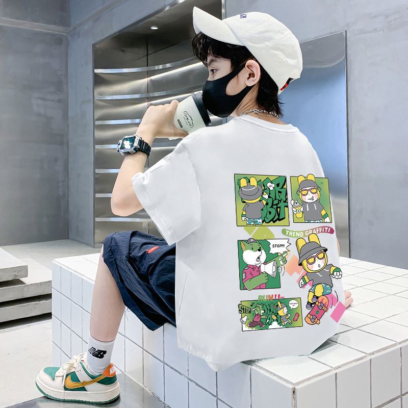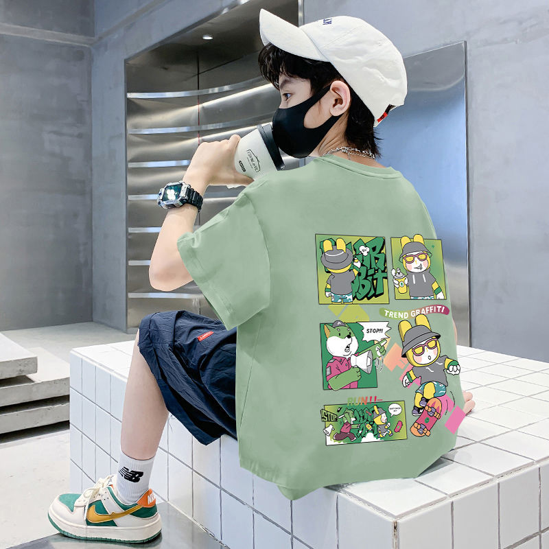 男童短袖棉质t恤夏季新款透气吸汗宽松帅气卡通中大童半袖儿童潮