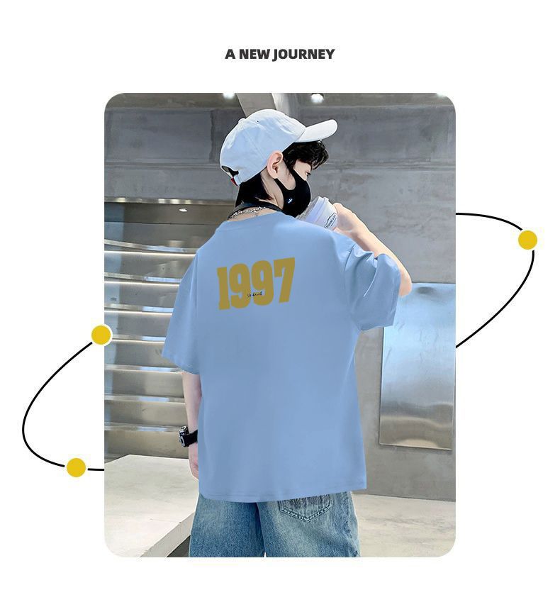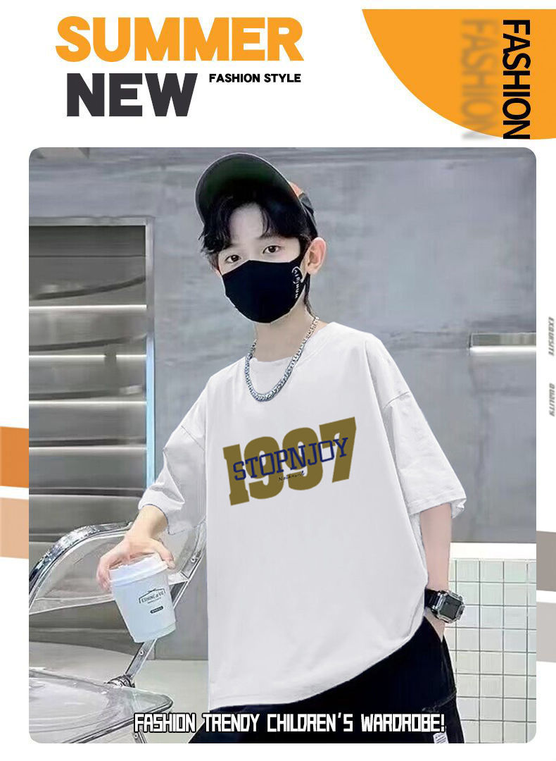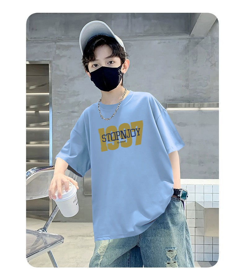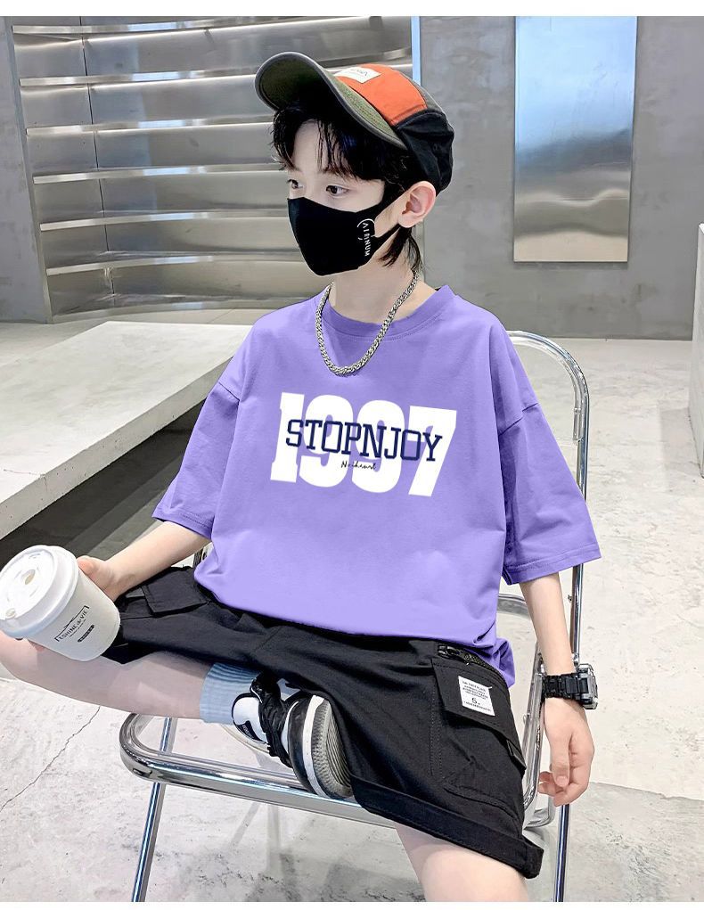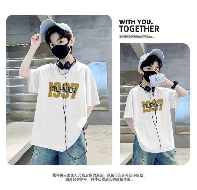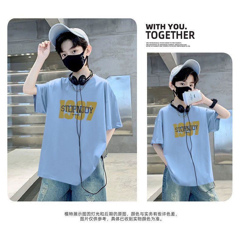 男童短袖棉质t恤夏季纯色印花新款宽松帅气卡通中大童半袖儿童潮