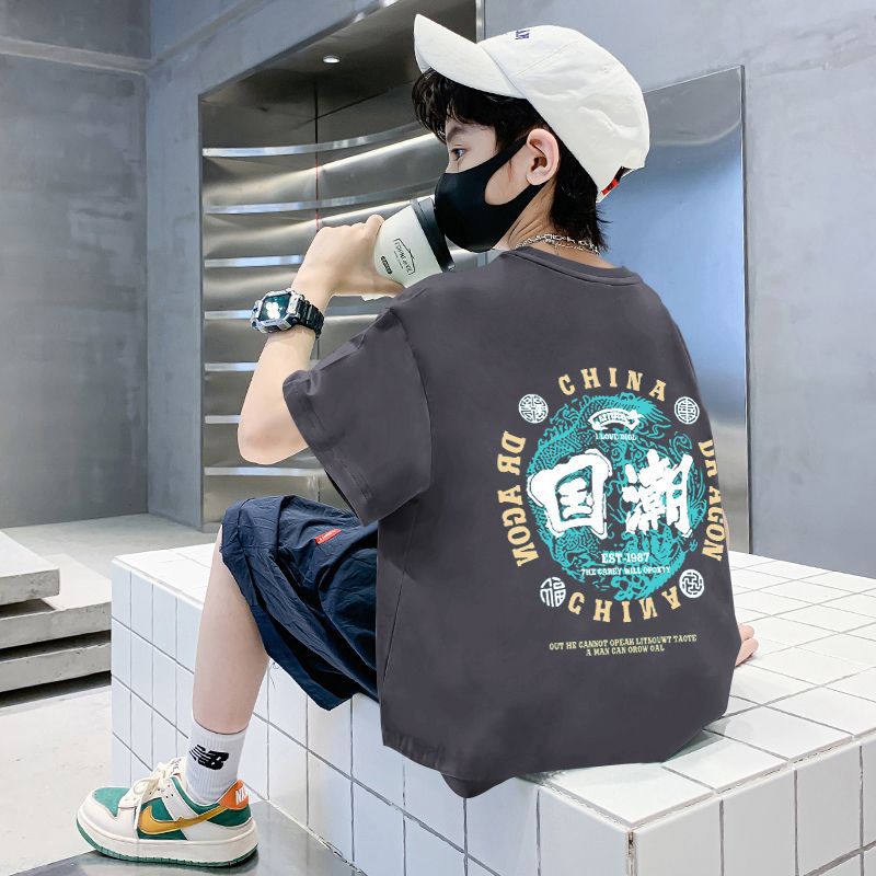 泰如夏季新款韩版男童美式百搭洋气时尚T恤儿童上衣短袖潮
